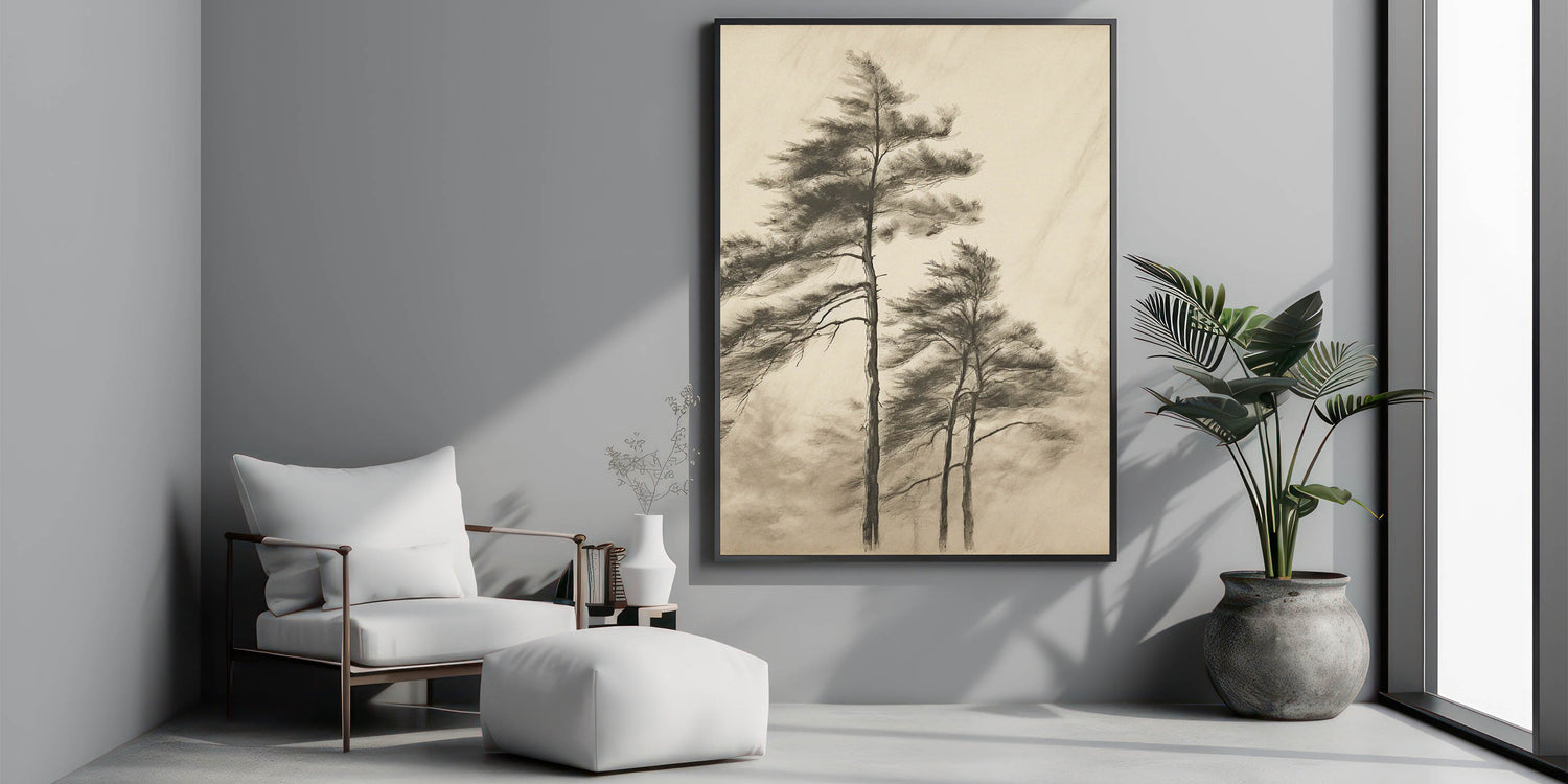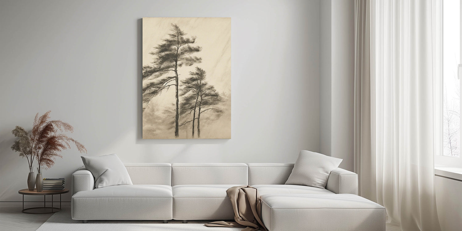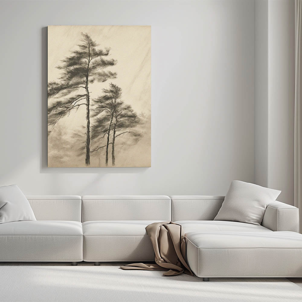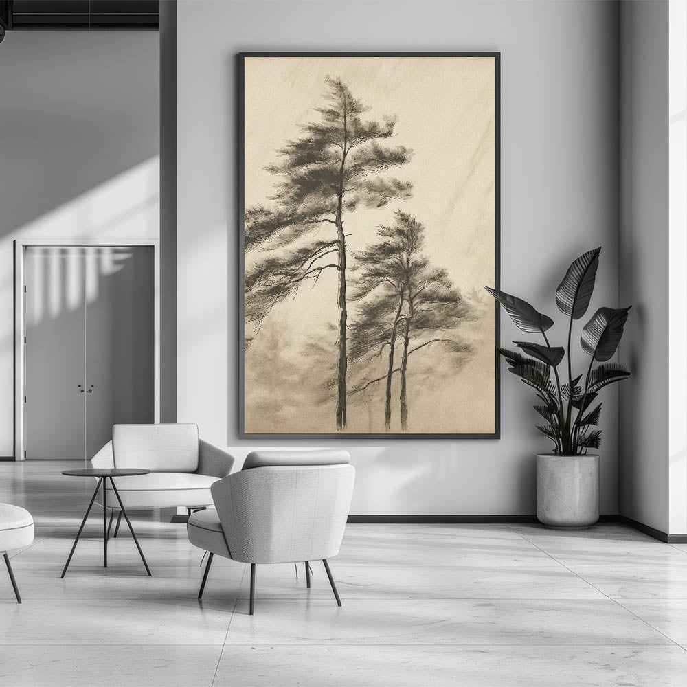 Bring tranquility and natural elegance to your space with this Vintage Botanical Art Print. Featuring a delicate sketch of tall trees swaying in the breeze, this artwork captures the serene beauty of nature. The muted tones and soft details offer a sophisticated, timeless look that complements both modern and vintage-style interiors. Whether placed in your living room, office, or hallway, this botanical wall decor creates an atmosphere of calm and sophistication.