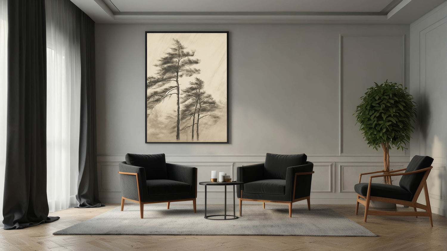 - Elegant botanical sketch of trees with a soft, muted aesthetic