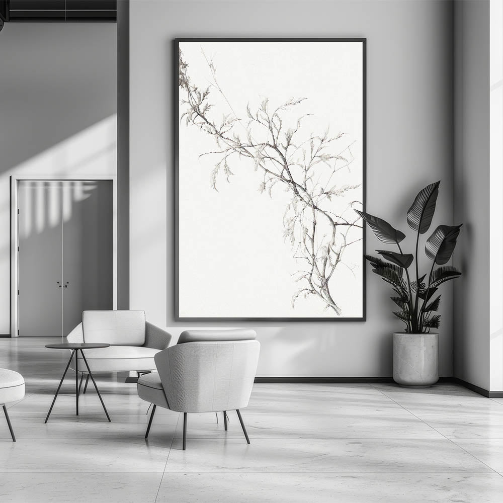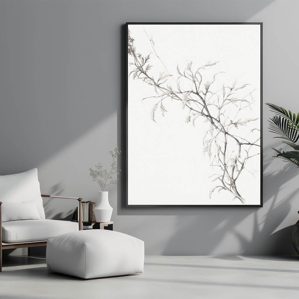 This stunning Vintage Botanical Art Print showcases an elegant pencil drawing of a delicate branch with fine, wispy leaves. The graceful sketch captures nature’s subtleties, offering a timeless, minimalist aesthetic perfect for any room. Ideal for those who appreciate vintage botanical illustrations, this piece adds a touch of nature-inspired beauty to your home.