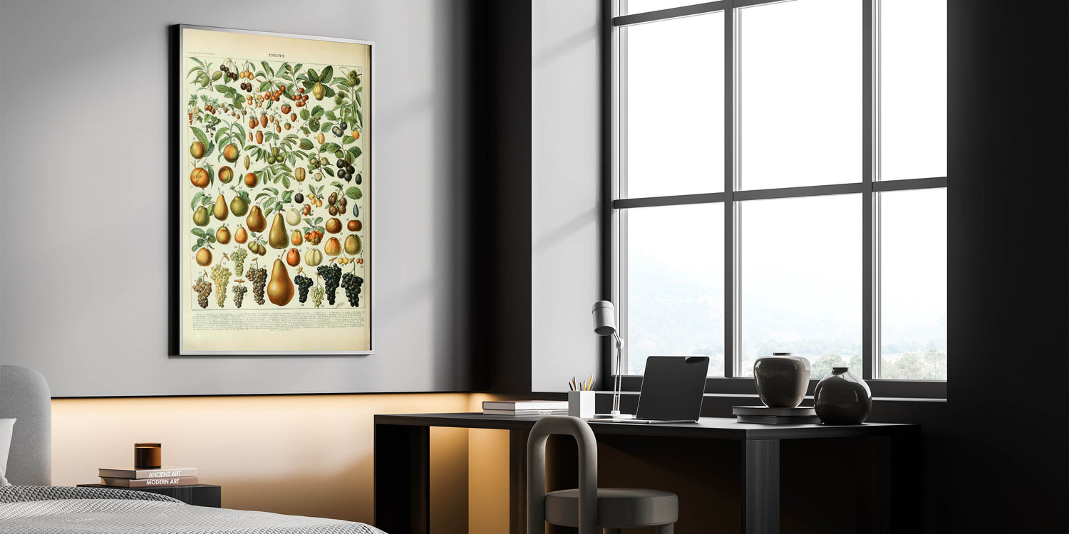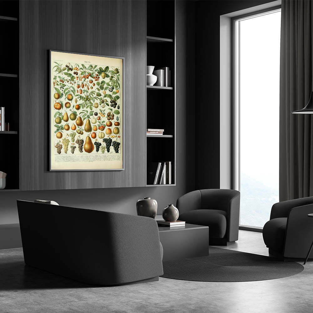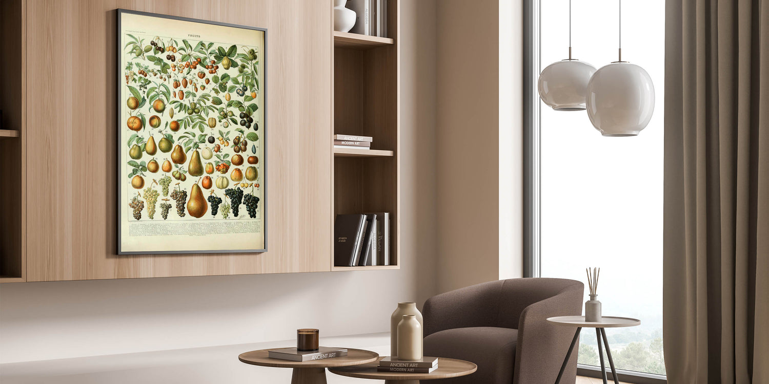 Our botanical wall art is a wonderful way to celebrate the natural world. With fruits like apples, peaches, and grapes, this piece captures the beauty of nature in all its detail. It’s perfect for kitchens, dining rooms, or living rooms where you want to add a fresh, vibrant feel. Elevate your home with this botanical illustration art and bring a touch of nature's charm into your home.