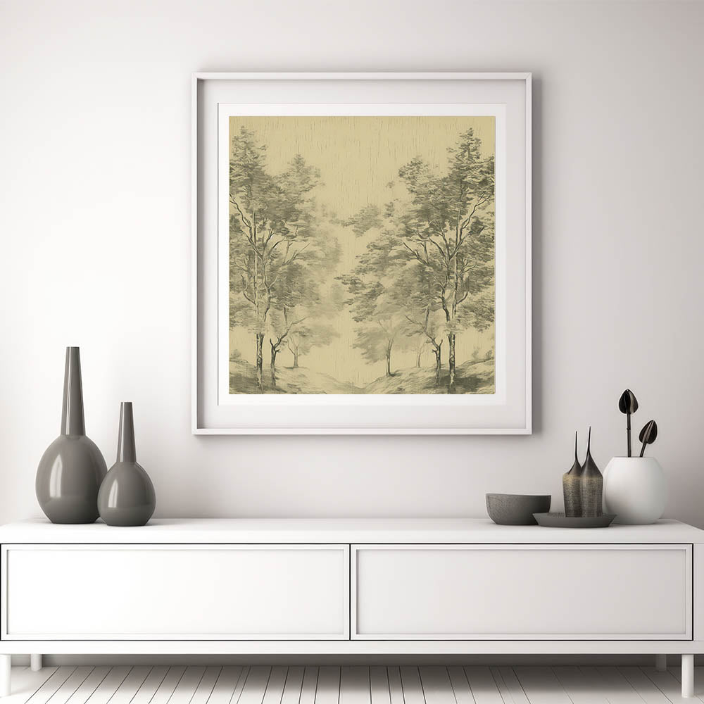 This Vintage Botanical Art Print features a beautiful scenic tree landscape, with detailed pencil drawings of trees set against a soft, muted background. The intricate shading and soft colors evoke a timeless, classic feel, making this piece an elegant addition to any home decor. Perfect for those who appreciate botanical illustrations and vintage-style art.