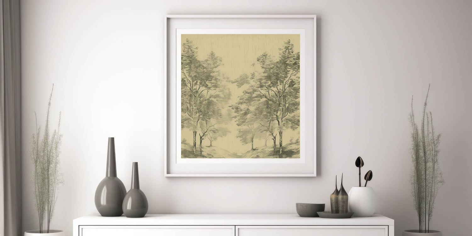 - Detailed pencil drawing of trees, creating a serene and elegant natural landscape