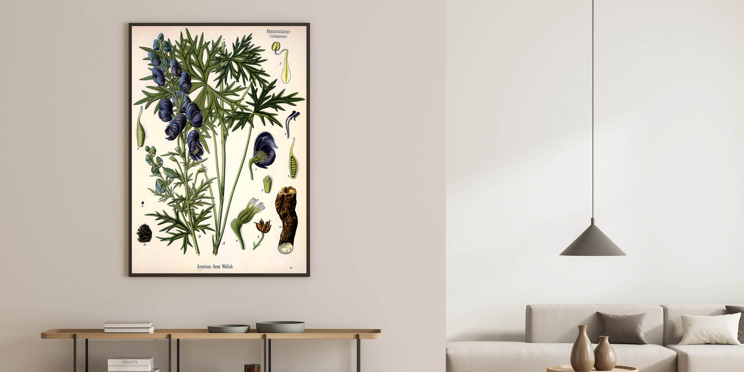 Vintage Botanical Illustration Art – Aconitum ferox Wallich Wall Art