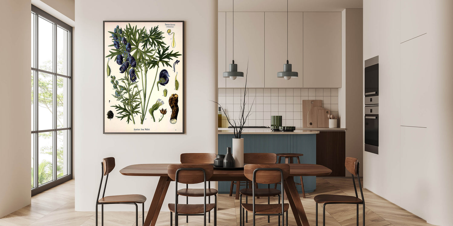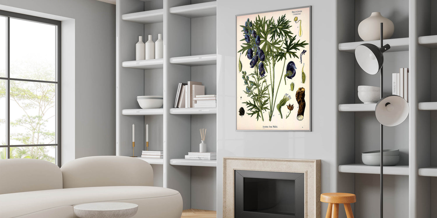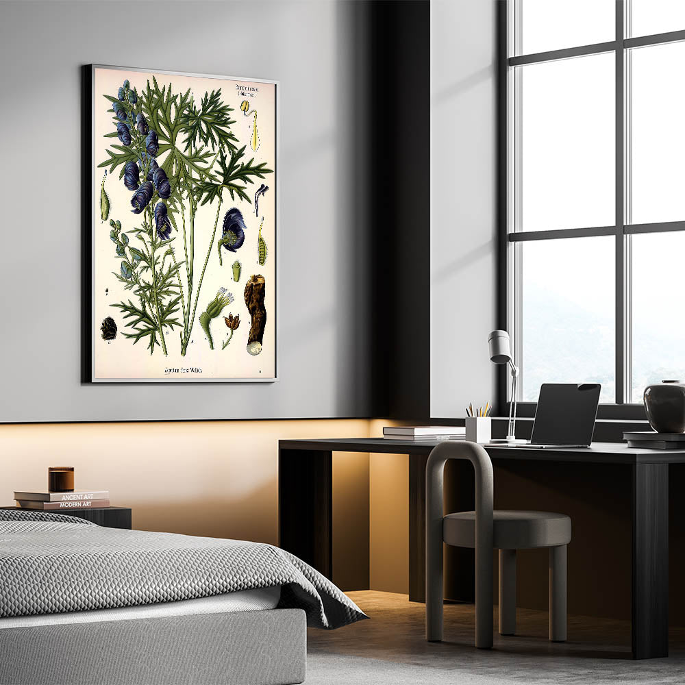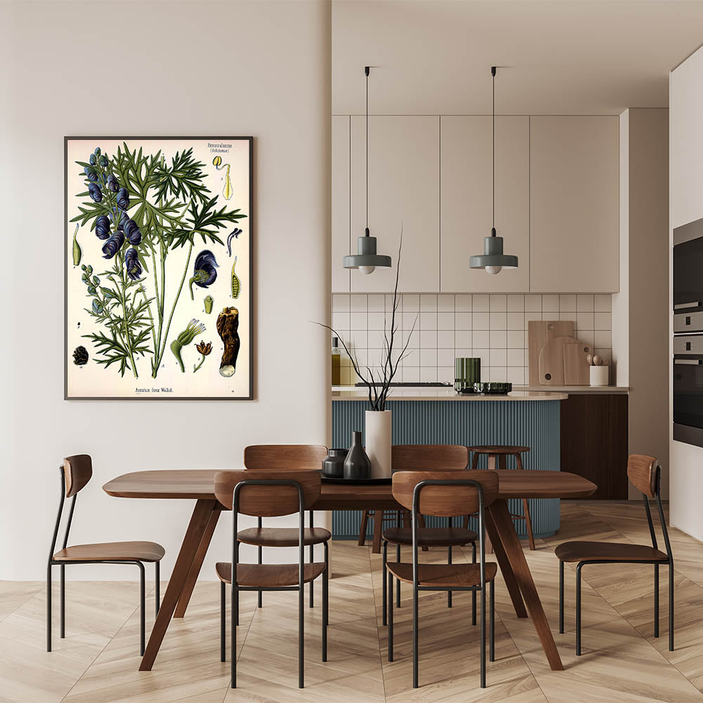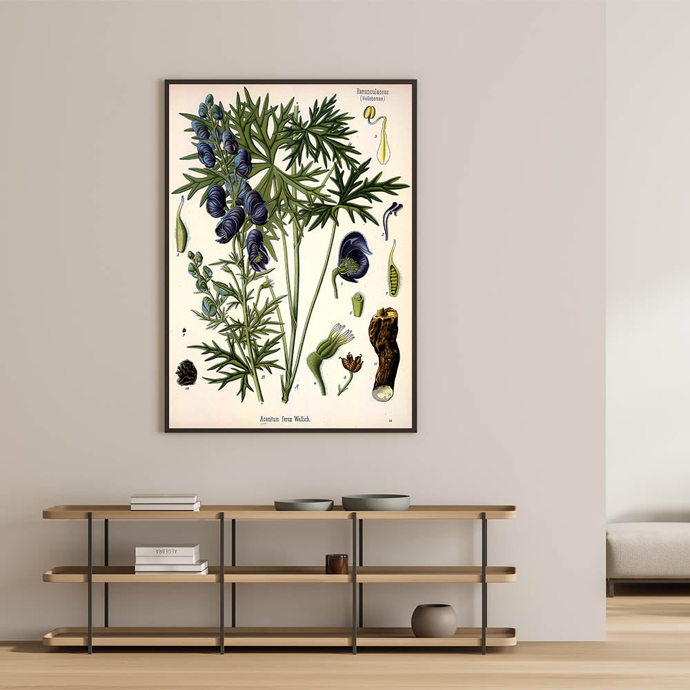 Add a touch of vintage charm to your space with this exquisite botanical illustration of Aconitum ferox Wallich. The delicate blue flowers and lush green leaves of this stunning plant are beautifully captured in this nature-inspired decor. Perfect for those who appreciate the elegance of vintage botanical illustrations, this wall art brings nature indoors in a timeless style. Whether displayed in a living room, study, or hallway, it’s sure to make a striking addition to your home.