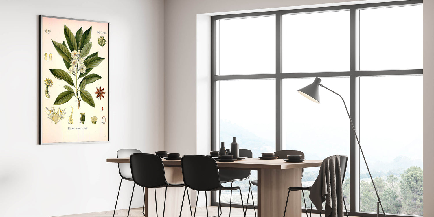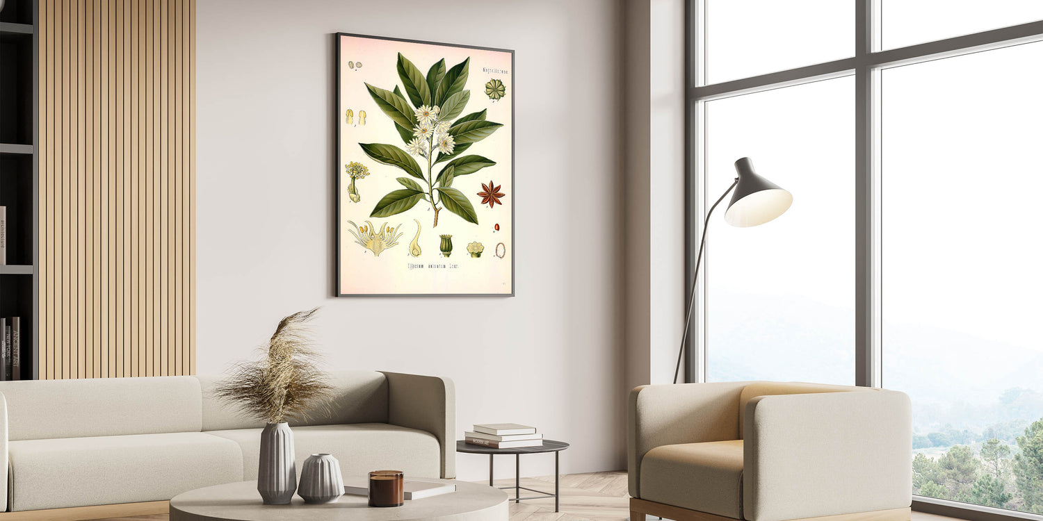 This popular botanical art piece effortlessly combines history and nature’s charm, making it a versatile choice for both vintage and modern interiors.