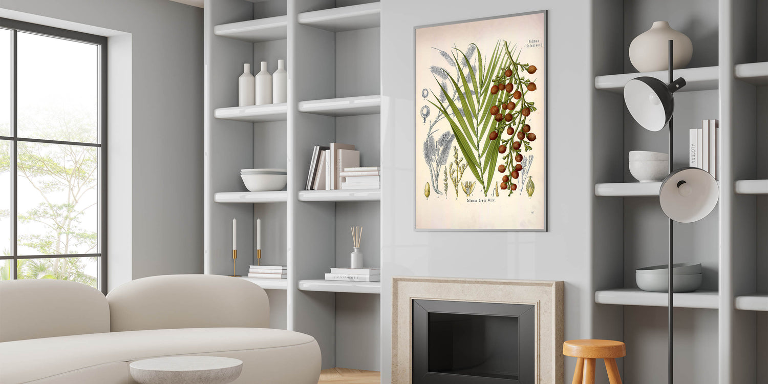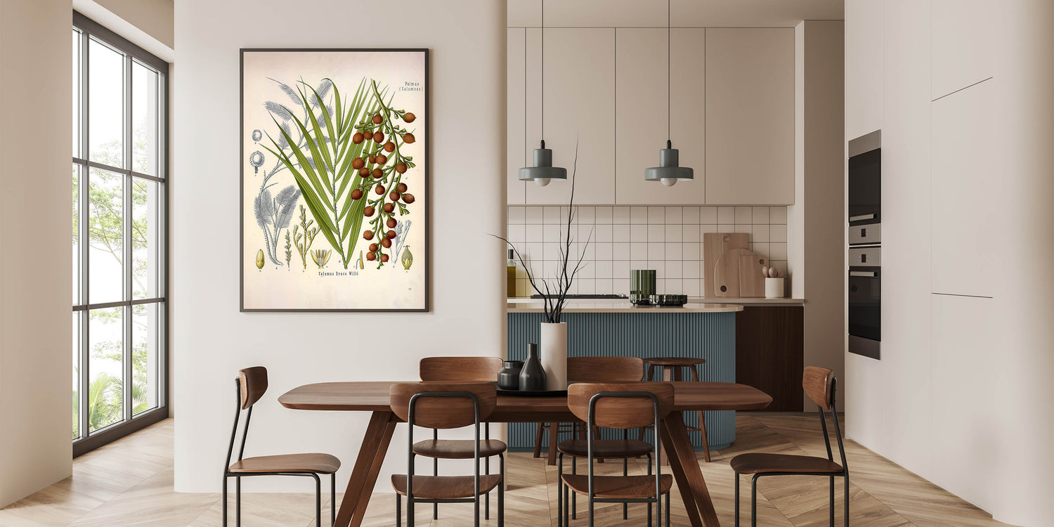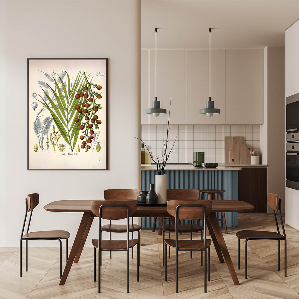 Transform your space with this detailed vintage botanical illustration of Calamus draco (Dragon's Blood Palm). Featuring elongated green leaves and clusters of textured red fruits, this art print embodies the essence of classic botanical studies. Perfect for nature lovers and those seeking to infuse a tropical yet vintage flair into their decor, this piece shines in living rooms, offices, or study spaces.