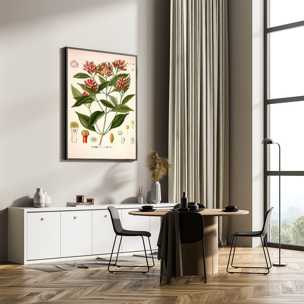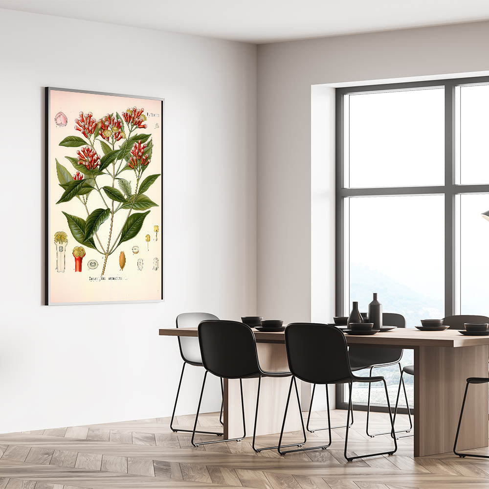Add a touch of nature’s warmth to your decor with this vintage botanical illustration of Caryophyllus aromaticus L. (Clove). This artwork beautifully captures the rich red buds and lush green leaves of the clove plant, presenting a harmonious blend of nature's elegance and historical artistry. Ideal for those who appreciate vintage art style and nature-inspired decor, this print brings a warm and sophisticated botanical vibe to any room.