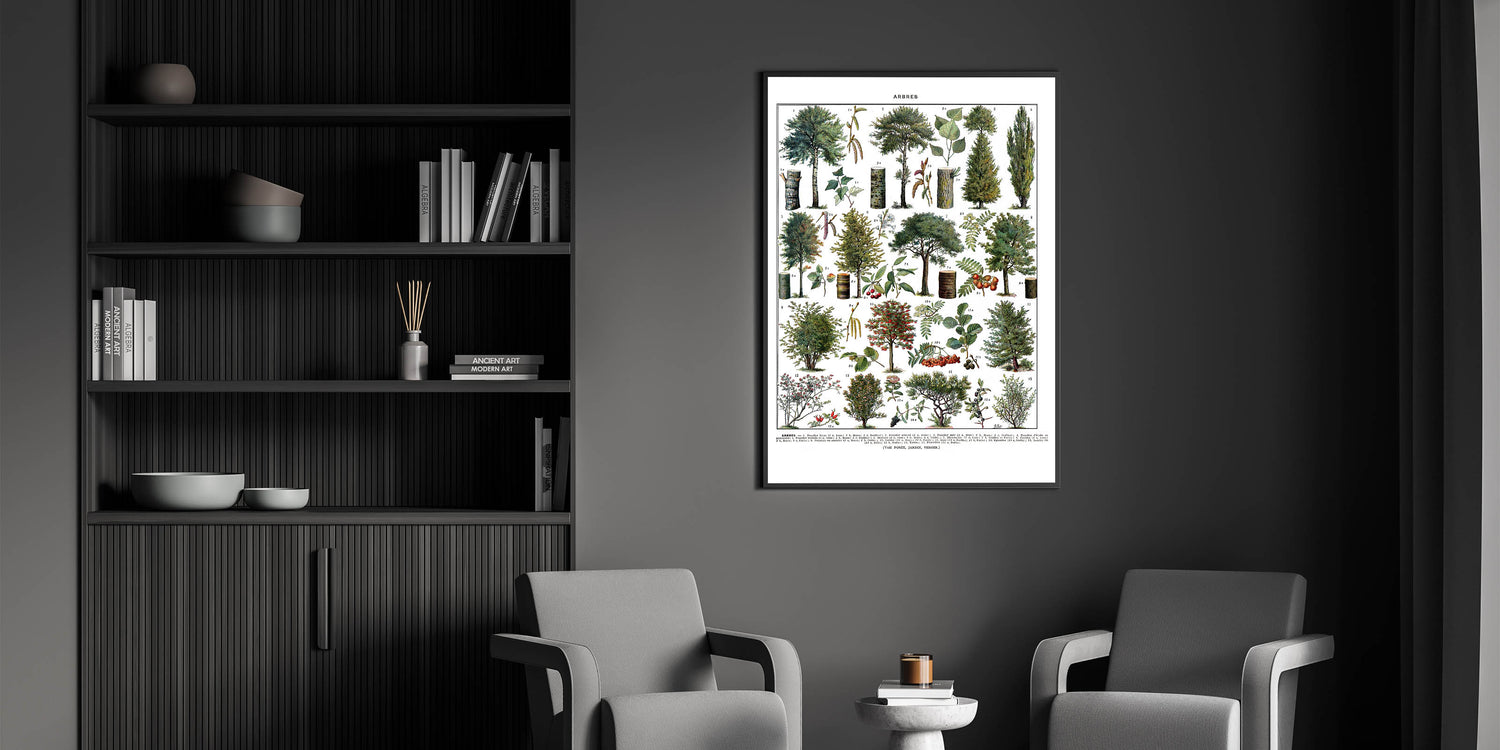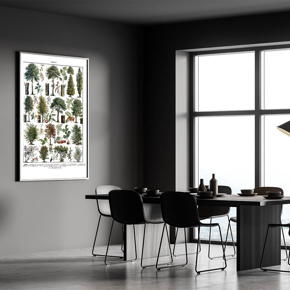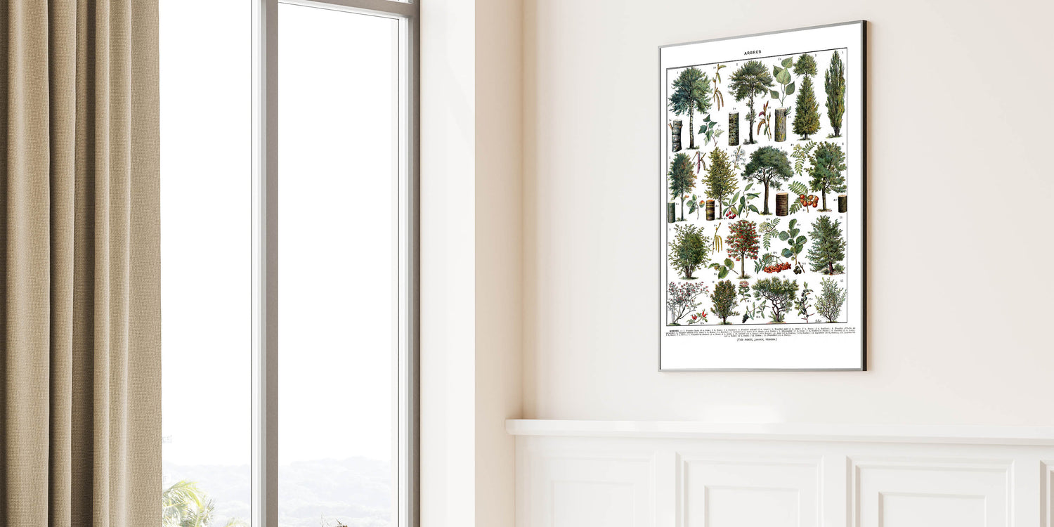 This popular botanical art piece adds a fresh and natural vibe to your home. Its vintage charm and comprehensive depiction of various trees make it a versatile choice for both modern and classic settings. Transform your walls with this beautiful botanical print today!