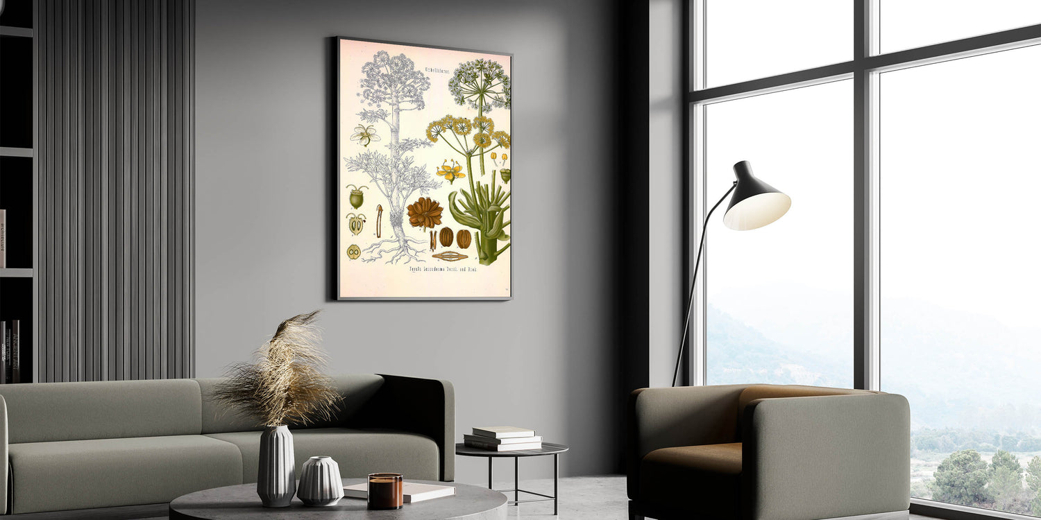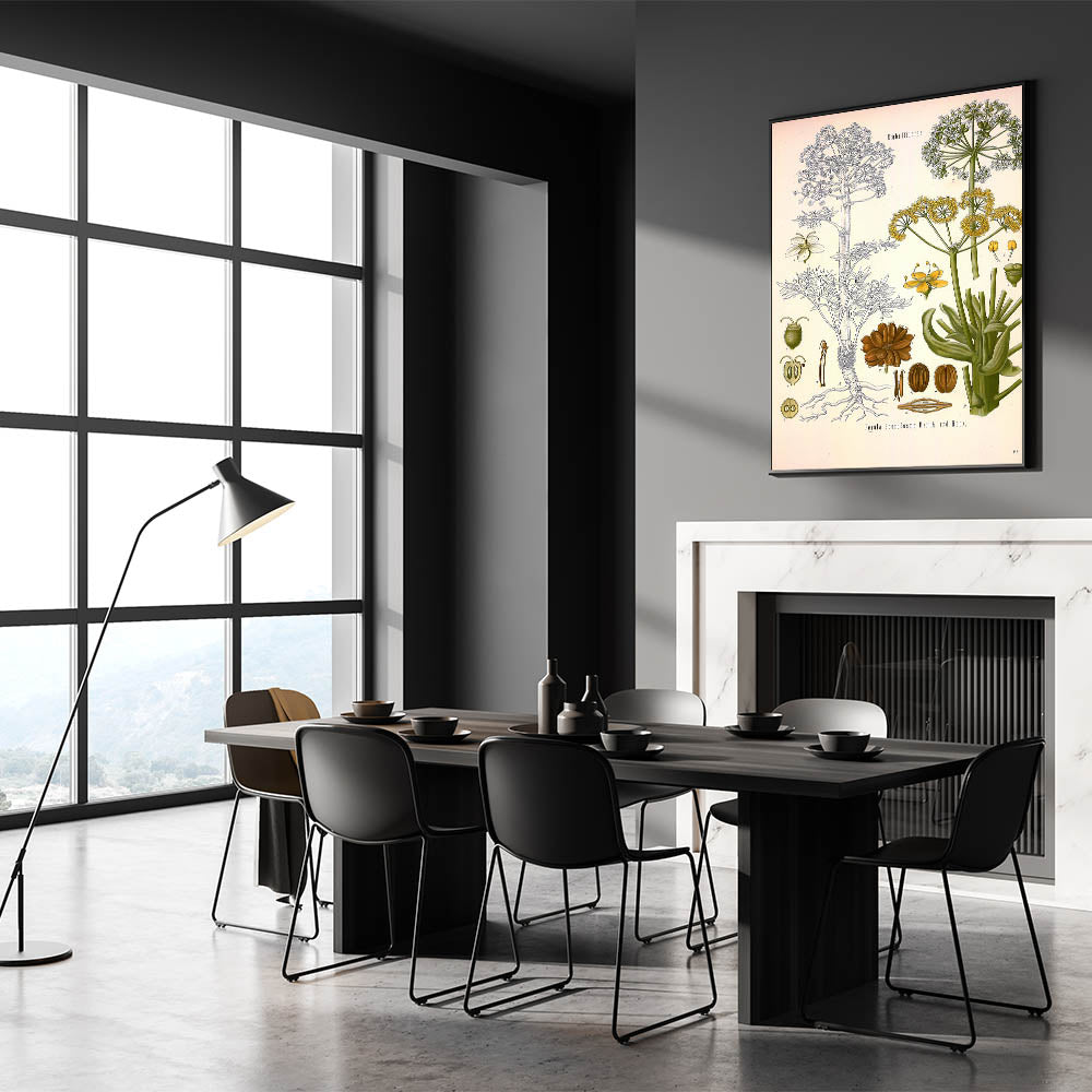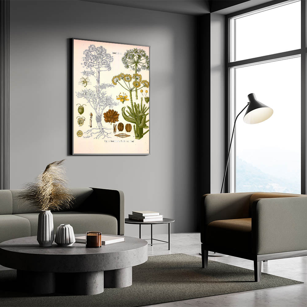 Bring nature's elegance into your space with this vintage botanical illustration of the Ferula Scorodosma plant. This artwork captures the intricate details of the plant’s umbels, leaves, and seeds with rich green and golden-yellow tones. Ideal for those who admire nature-inspired decor and vintage art style, this print adds a touch of sophistication to any room.