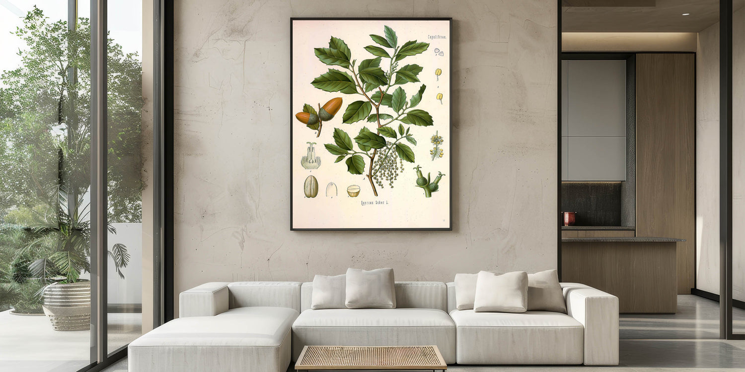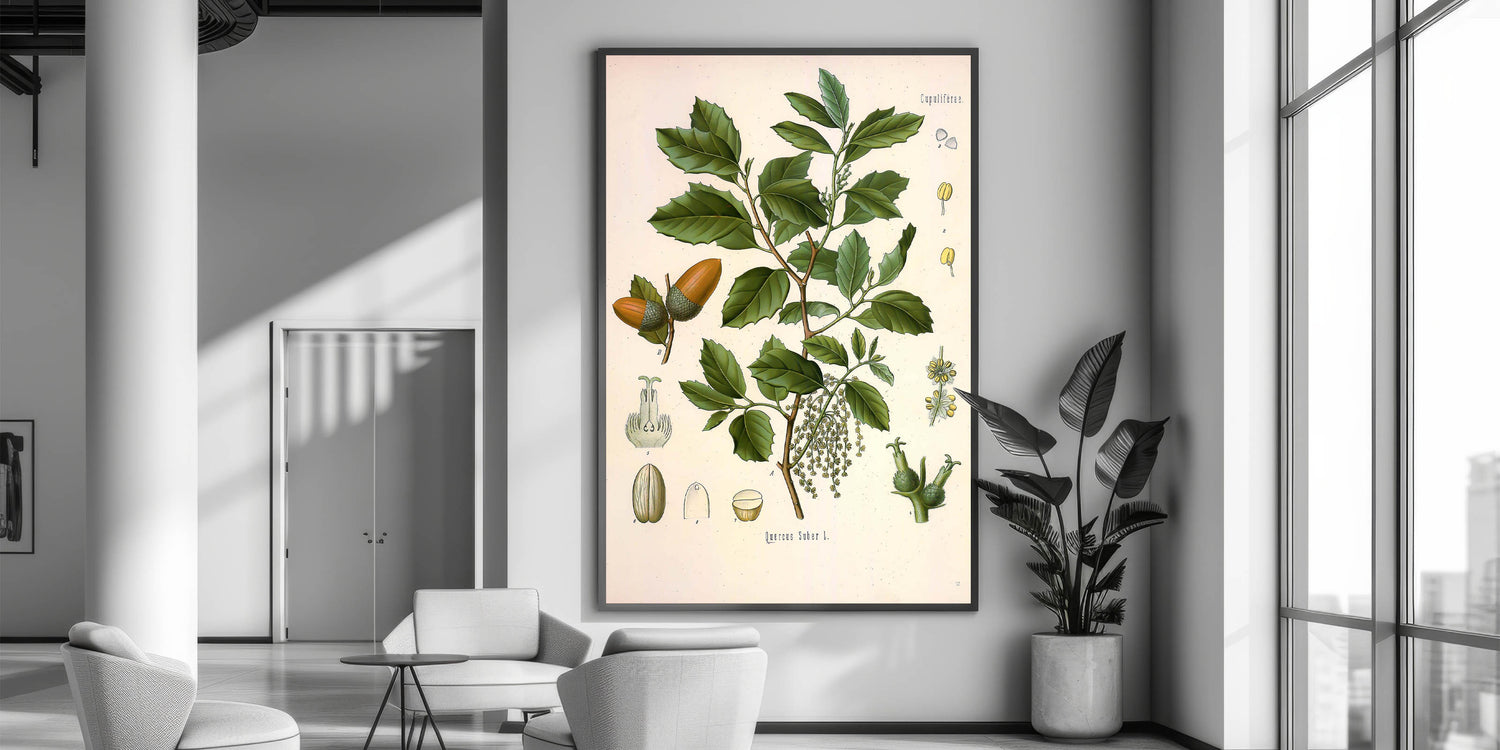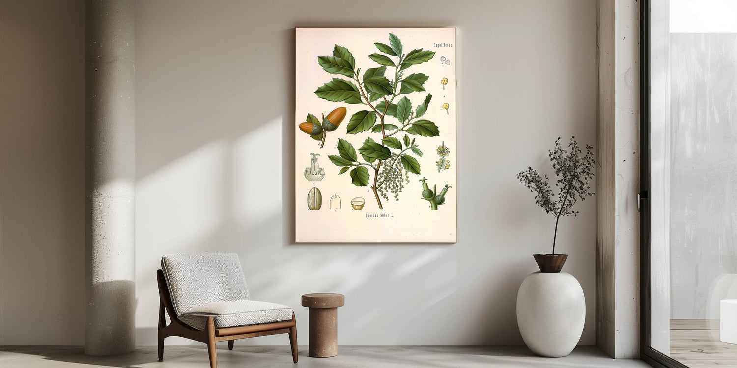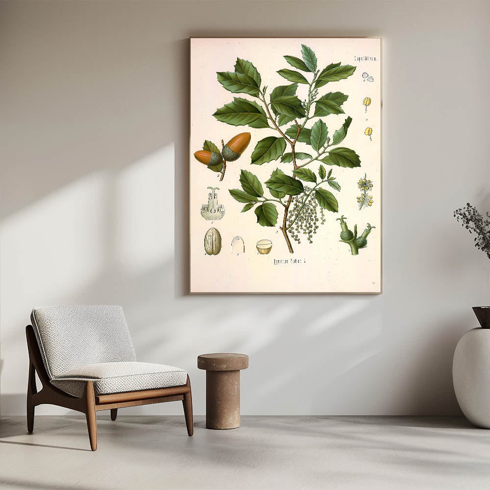 Vintage Botanical Illustration of Quercus Plant Art Print
