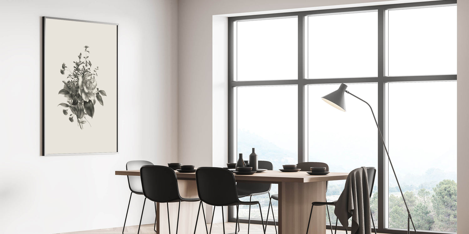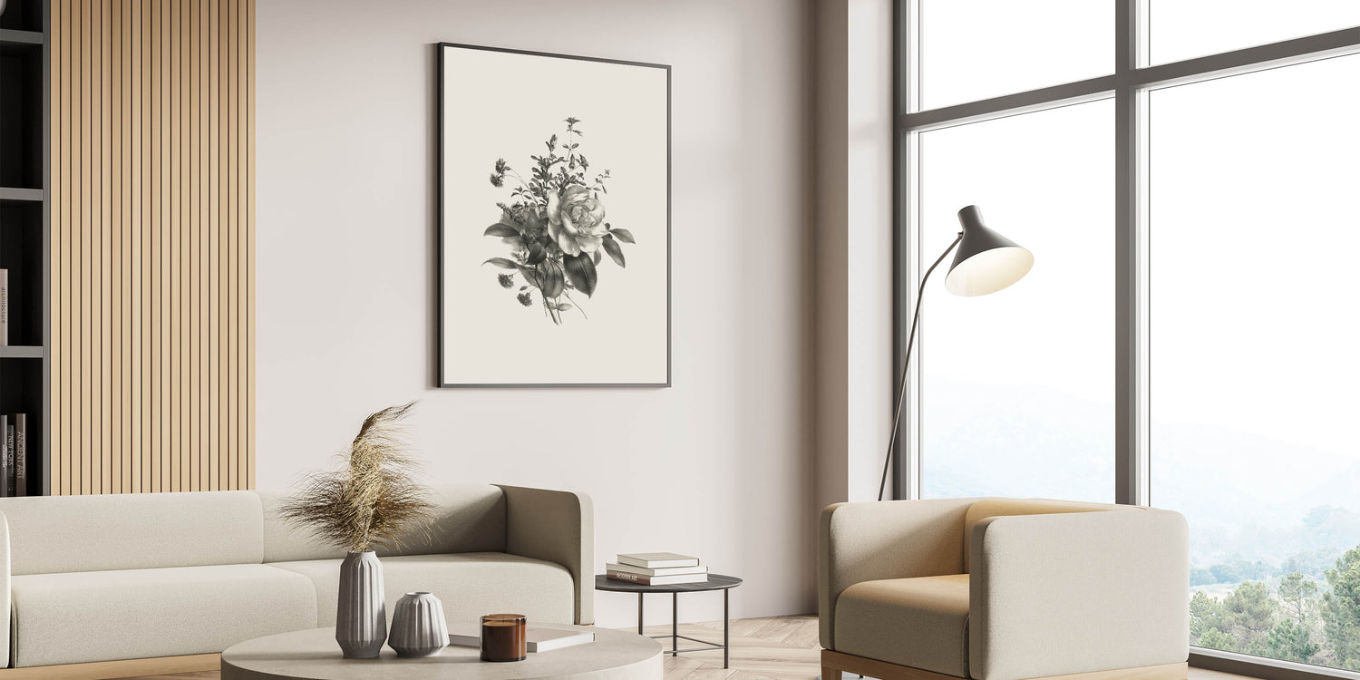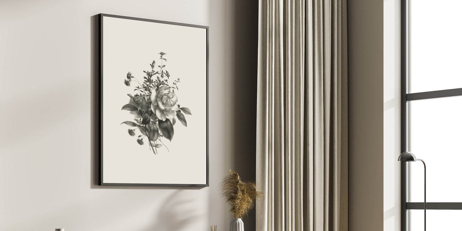 Vintage Botanical Rose Art Print – Black and White Botanical Wall Art