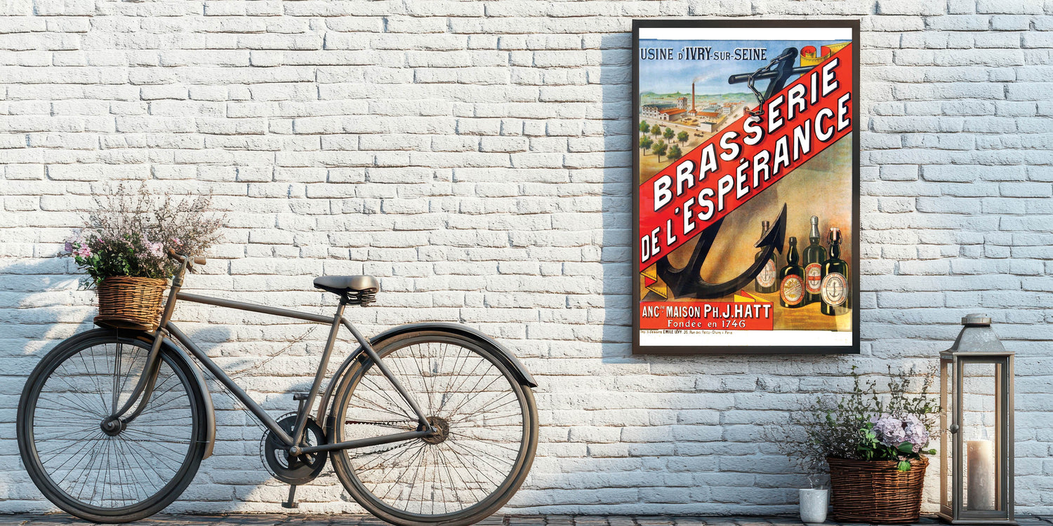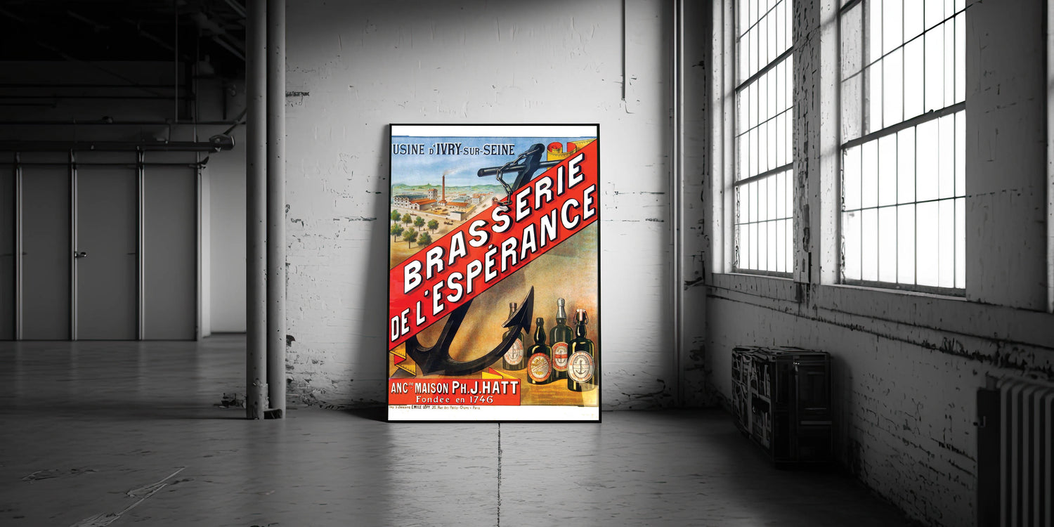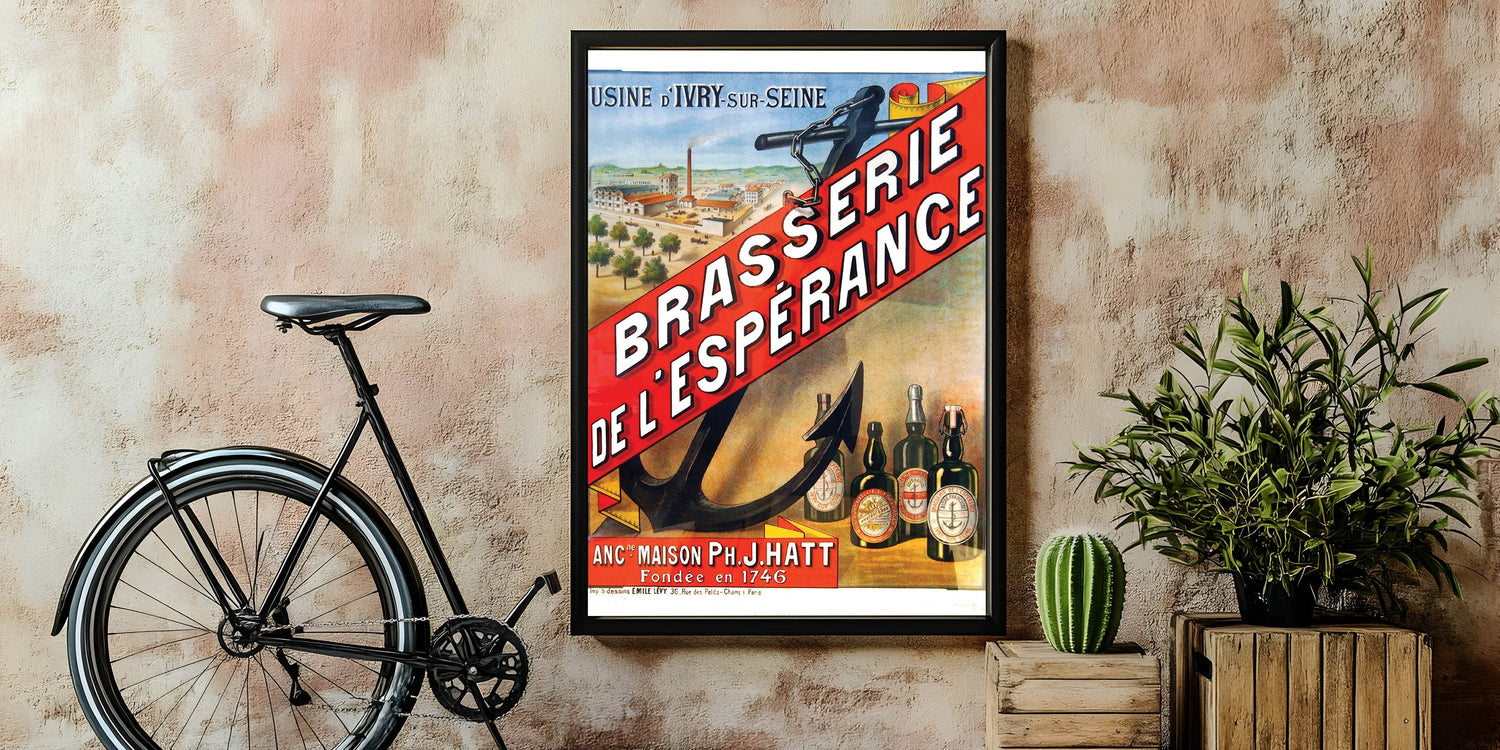 This Vintage Brasserie de l’Espérance Poster is a captivating piece of historical advertising art that takes you back to the late 19th century. Featuring a beautiful illustration of the brewery and its iconic bottles, this retro wall art highlights the rich tradition and charm of early French beer marketing. With bold typography and vibrant colors, it’s perfect for adding a nostalgic touch to any space.