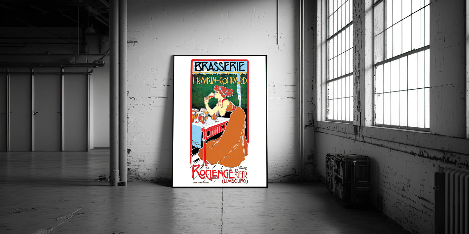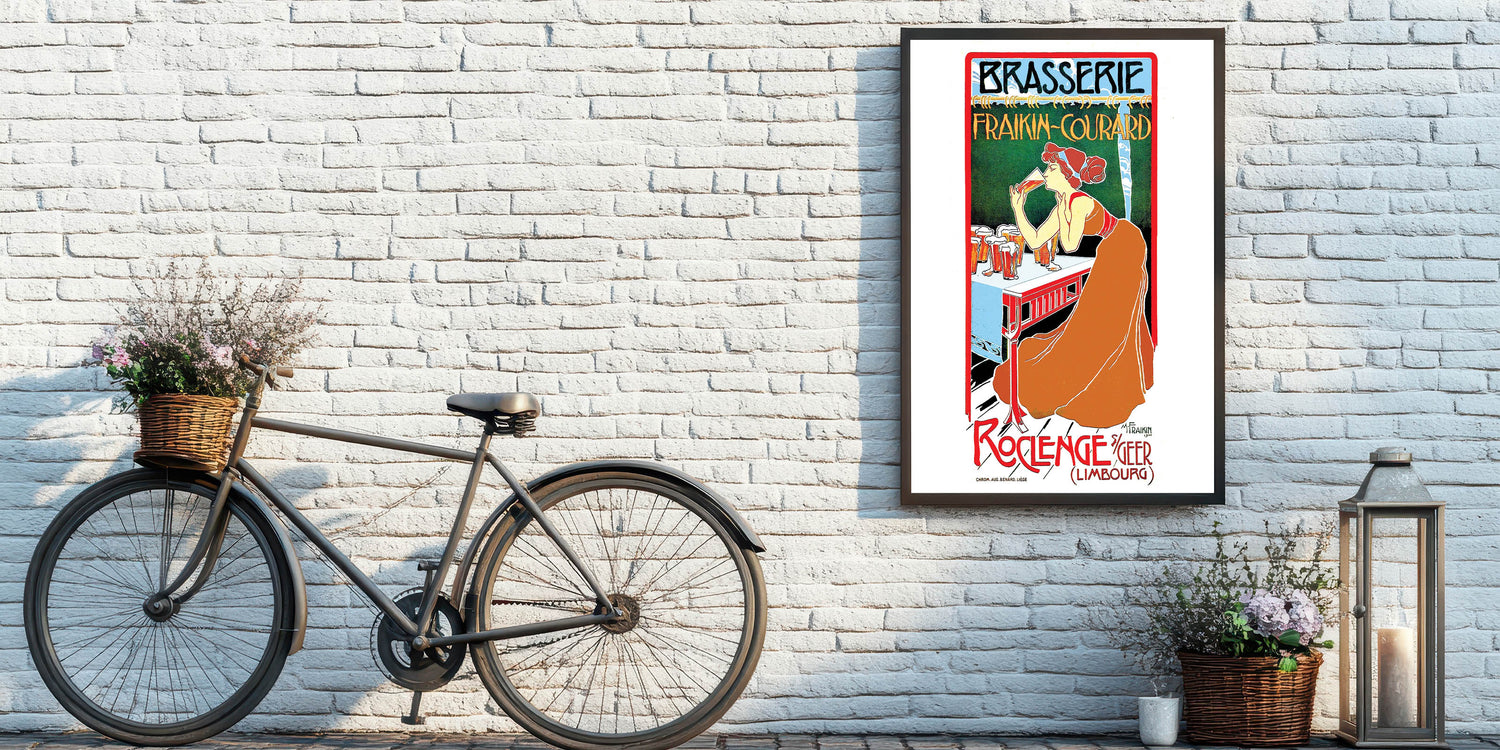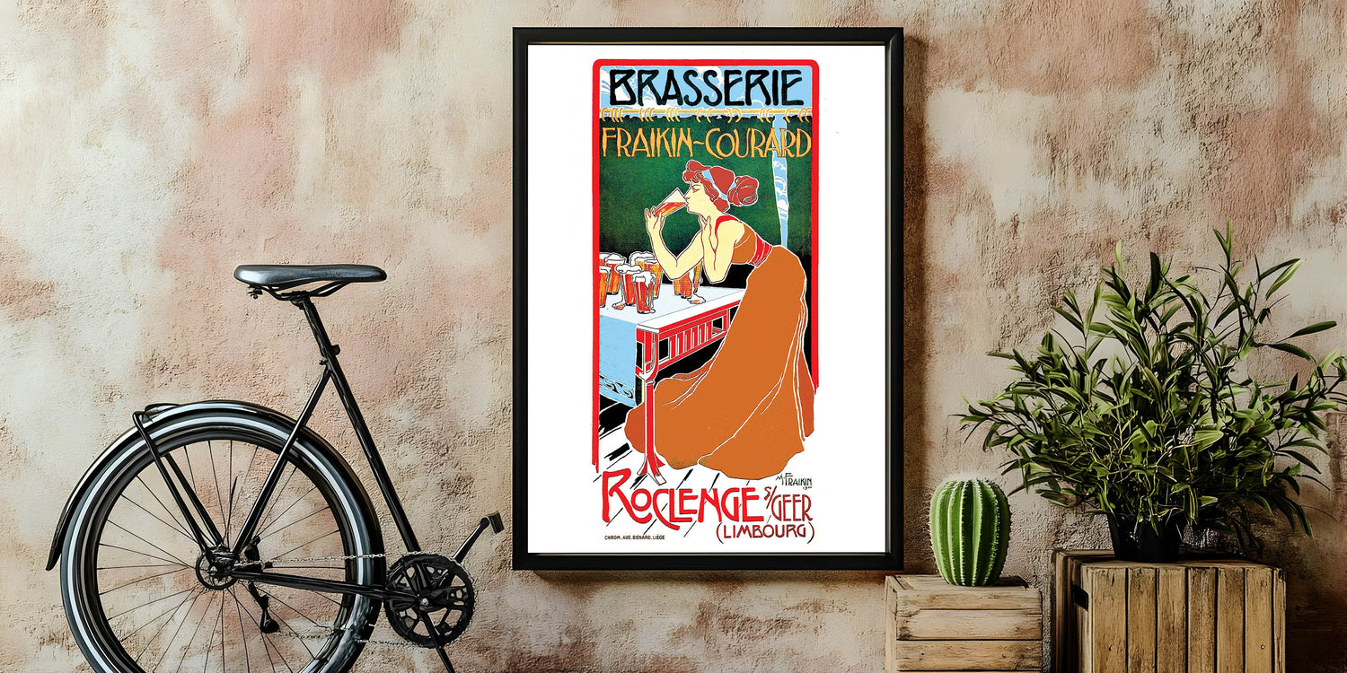 Add a piece of history to your walls with this Vintage Brasserie Fraikin-Courard Poster, a beautiful representation of classic advertising artwork from the 1900s. This nostalgic piece captures the essence of turn-of-the-century European beer advertising, with its bold typography and eye-catching color palette. Perfect for collectors and lovers of retro wall art, it brings a timeless charm to any space.