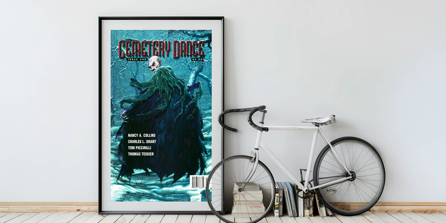 - High-quality reproduction of a vintage Cemetery Dance magazine cover