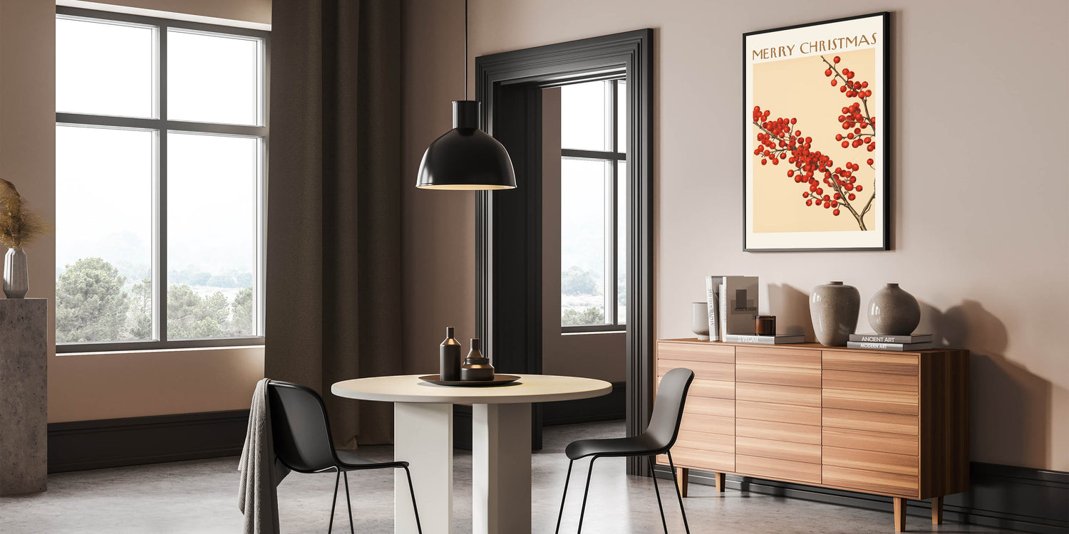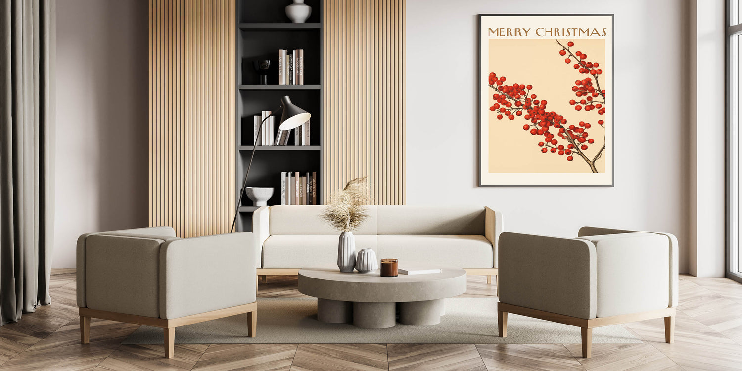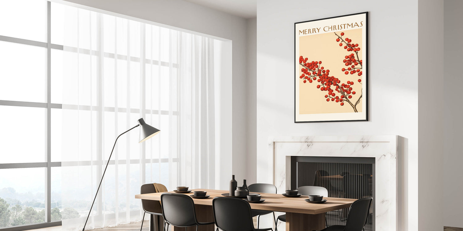 Celebrate the holiday season with this Vintage Christmas Botanical Print, featuring vibrant red winter berries against a warm beige background. Inspired by historical botanical art, this botanical wall decor adds a festive touch to your home while maintaining an elegant, vintage aesthetic.