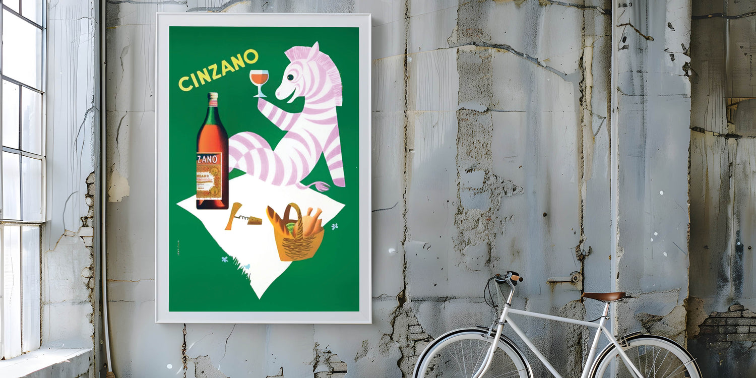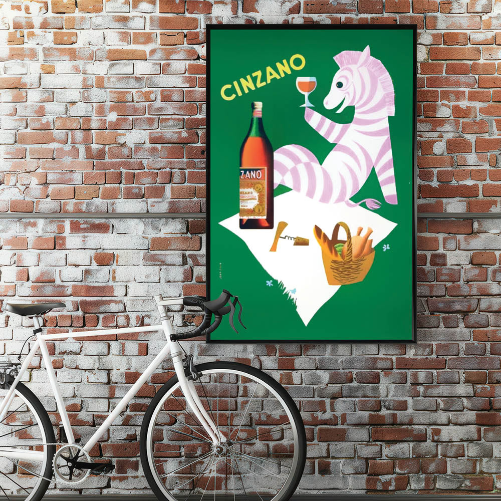 Vintage Cinzano Advertising Poster - Retro Zebra Wall Art