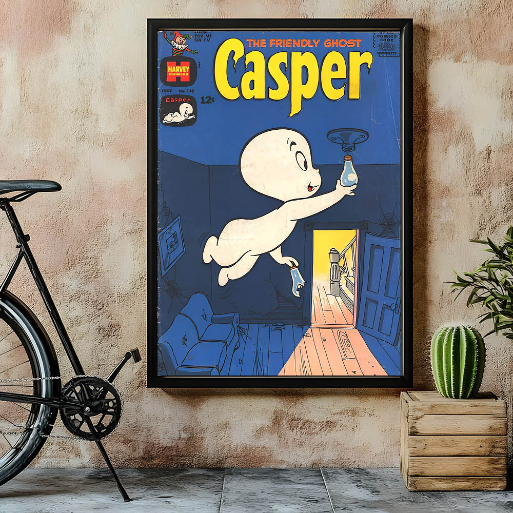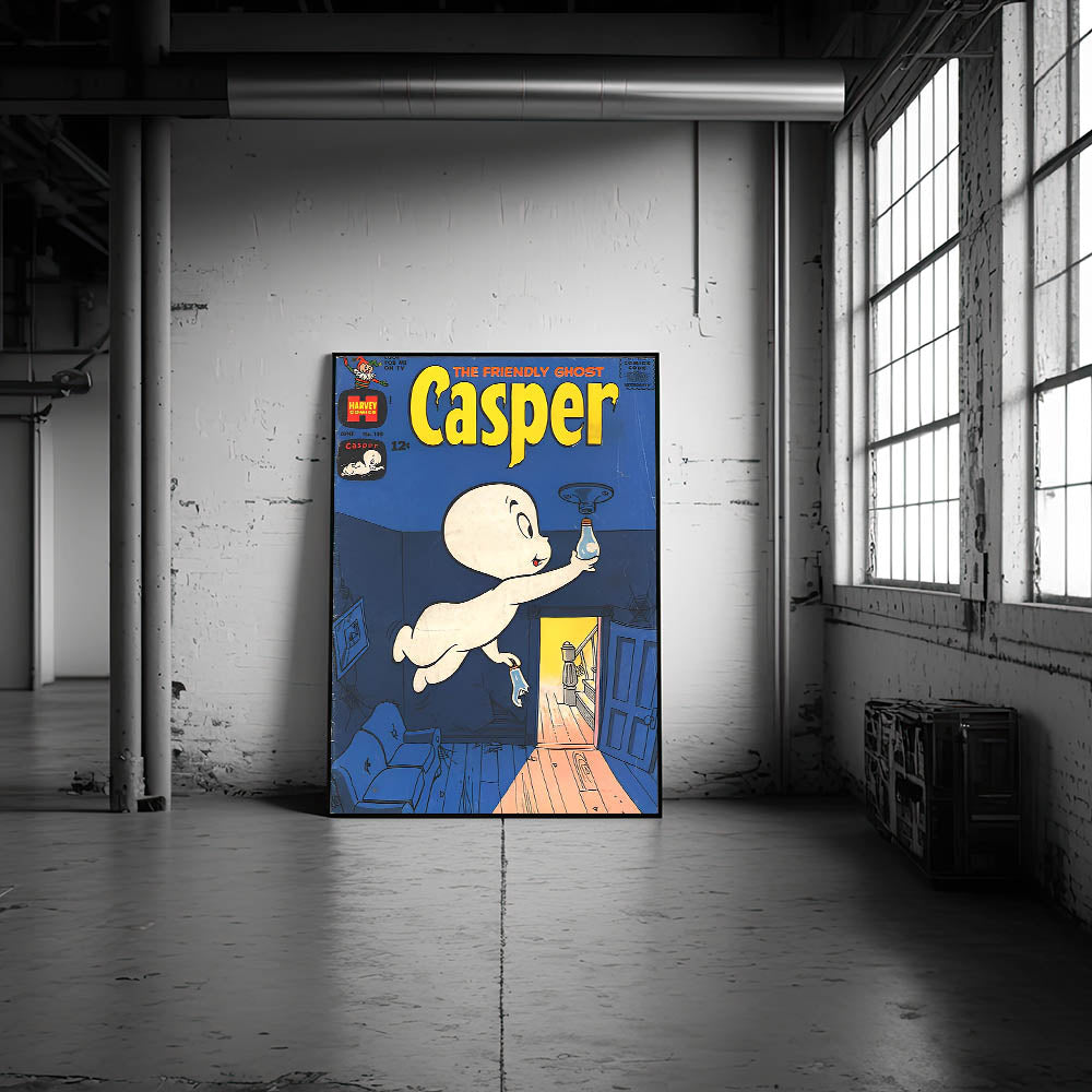 - Collectible comic canvas art featuring Casper in his iconic friendly ghost style