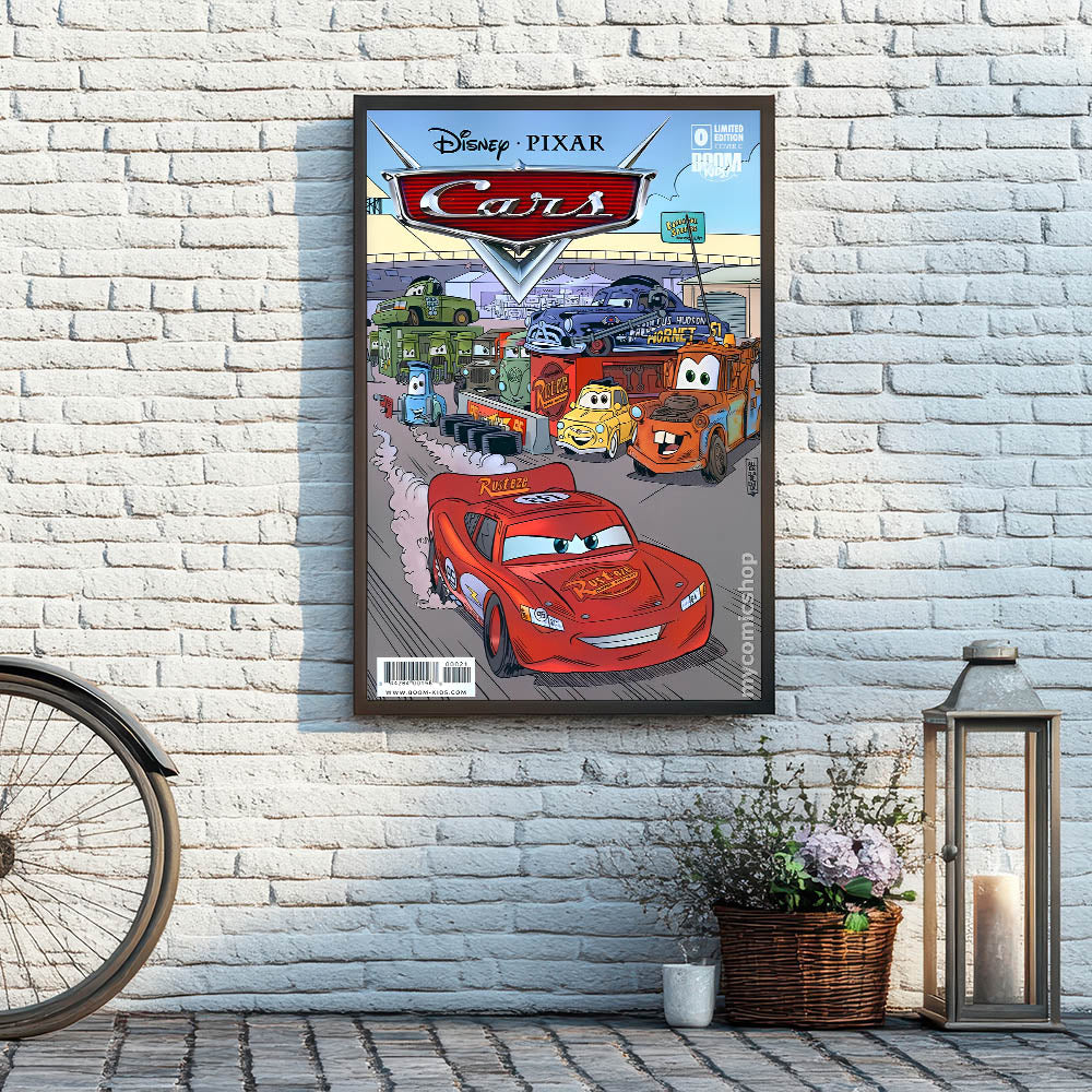 This collectible comic canvas art brings the high-speed adventure of Disney Pixar’s Cars to life Whether you’re a lifelong fan of Lightning McQueen or love retro racing posters, this piece is the perfect decor for any car enthusiast