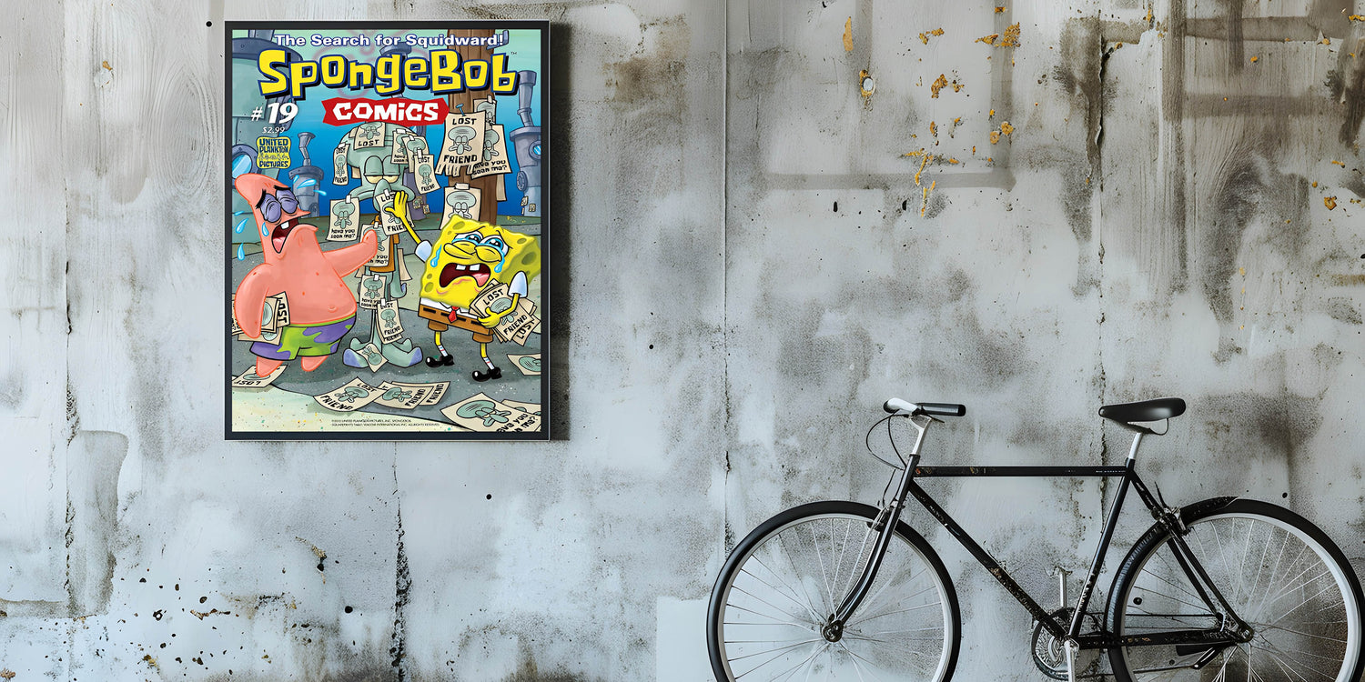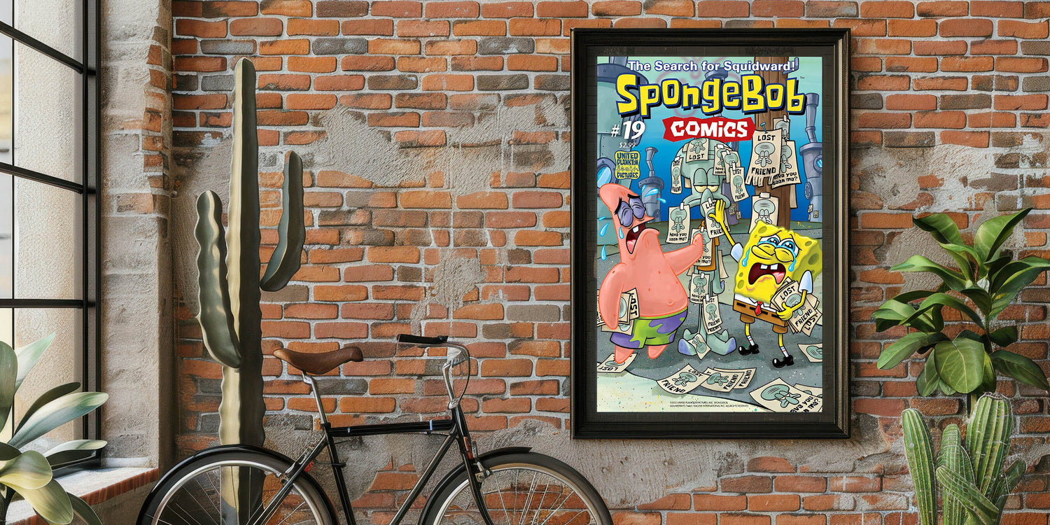 Dive into nostalgia with this SpongeBob SquarePants Vintage Comics Wall Art Featuring SpongeBob, Patrick, and Squidward in a hilarious comic scene, this classic comic book poster is a must-have for fans of retro cartoons and Bikini Bottom’s beloved characters