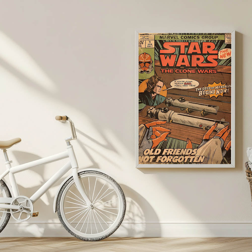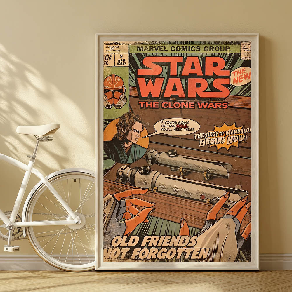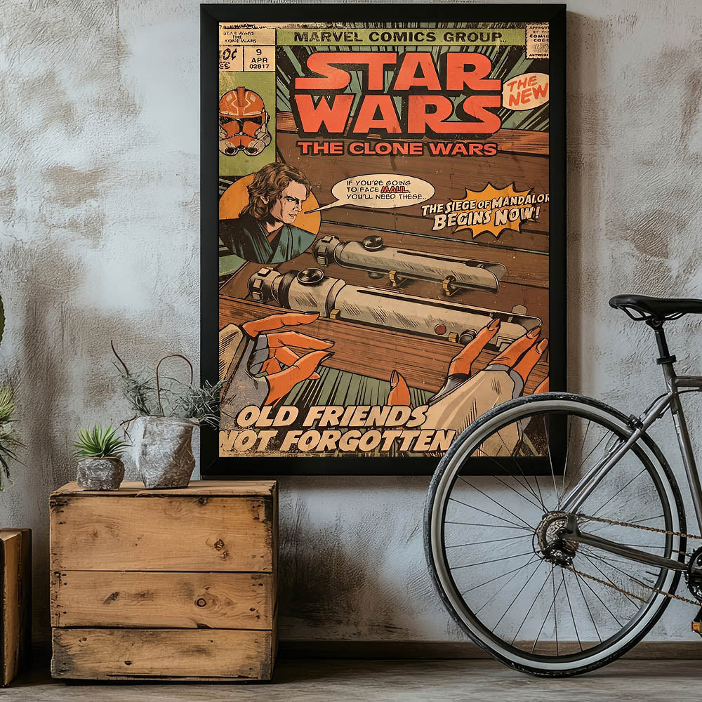 Step into a galaxy far, far away with this Star Wars: The Clone Wars Vintage Comics Wall Art Featuring Anakin Skywalker, lightsabers, and the Siege of Mandalore storyline, this classic comic book poster is a must-have for any Star Wars fan and collector