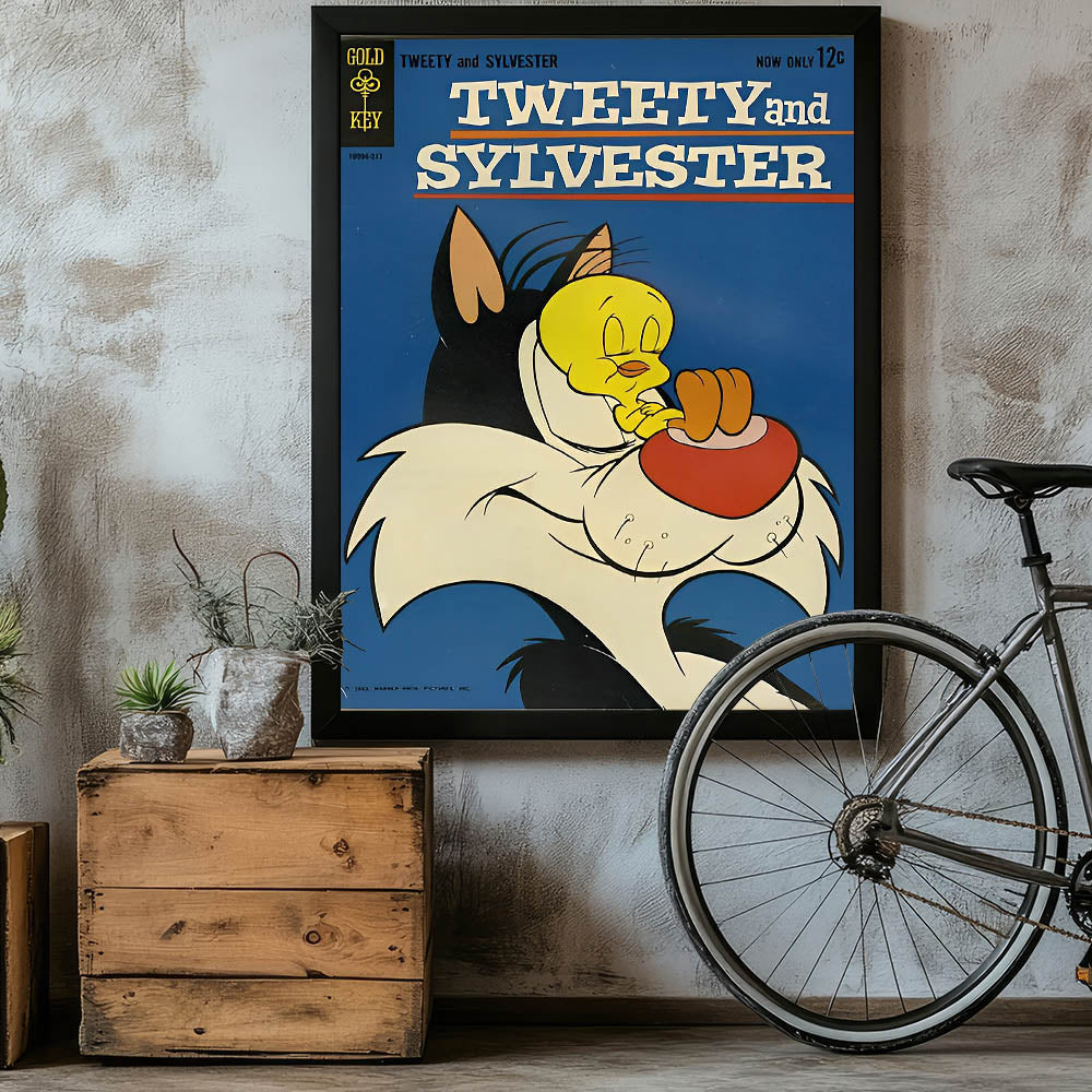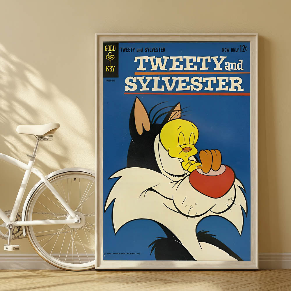 - High-quality retro comic art print featuring Tweety and Sylvester