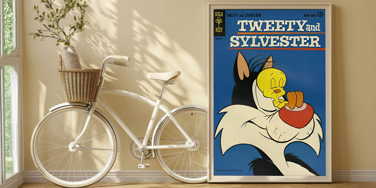 Celebrate classic cartoon rivalry with this Tweety and Sylvester Vintage Comics Wall Art Featuring Sylvester the cat and Tweety Bird in a humorous comic moment, this classic comic book poster is perfect for fans of vintage animation