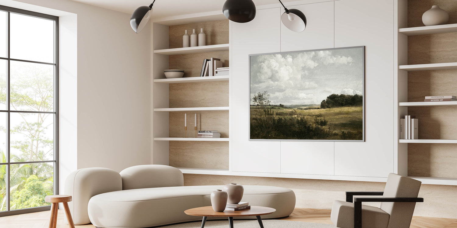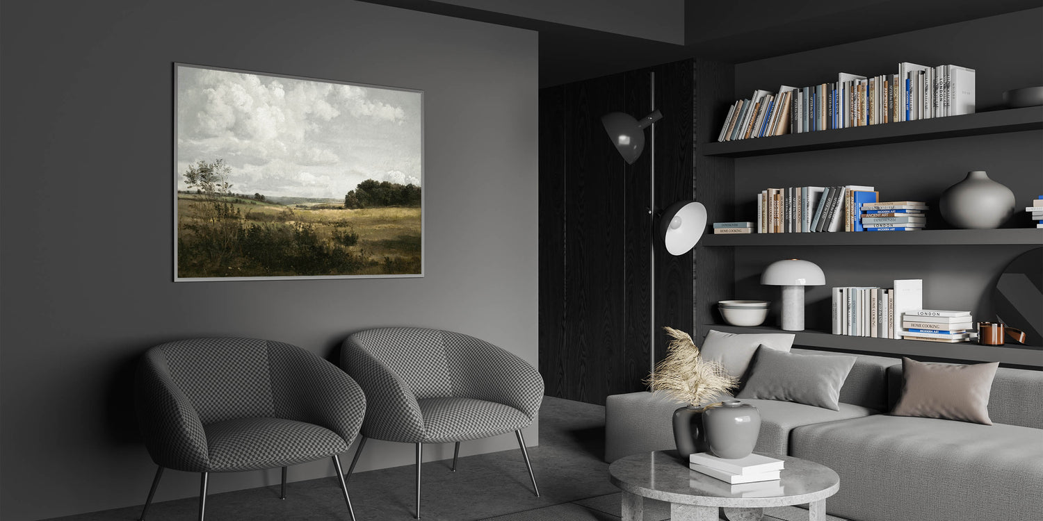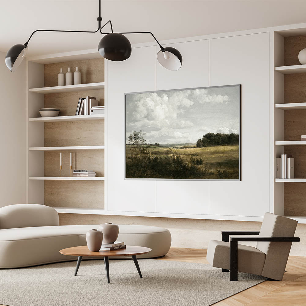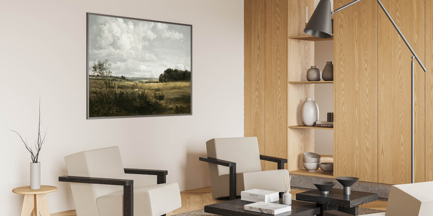 - A beautiful example of vintage nature wall art, capturing the essence of serene countryside views in a timeless style
