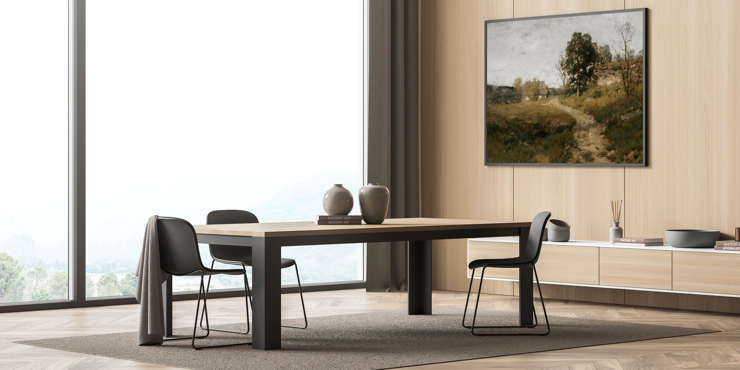 This vintage-inspired countryside scene brings timeless charm to your home, offering a peaceful retreat through art.