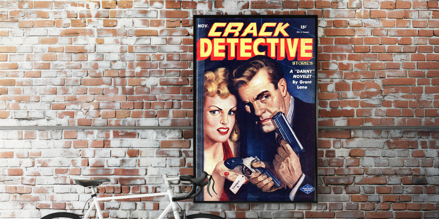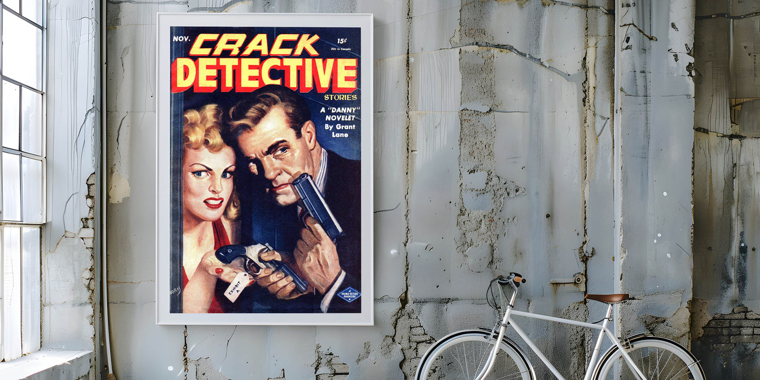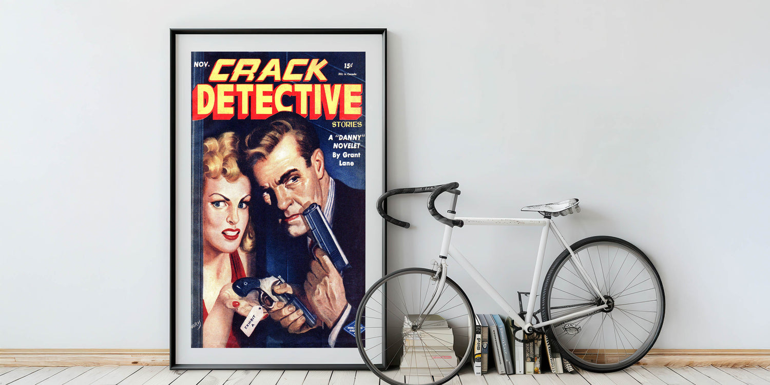 Bring this thrilling piece of vintage detective fiction into your home with this antique magazine cover art.