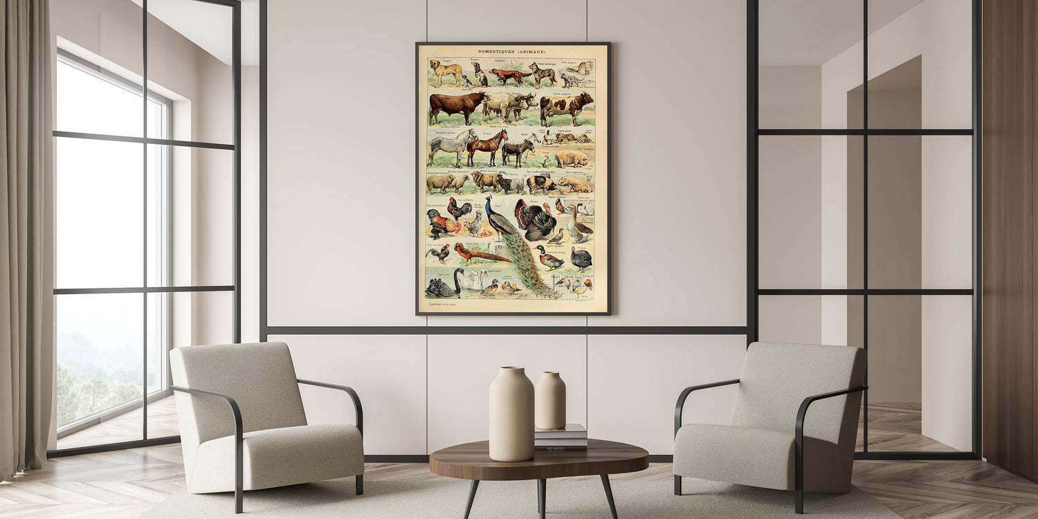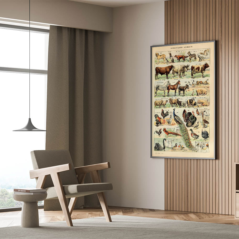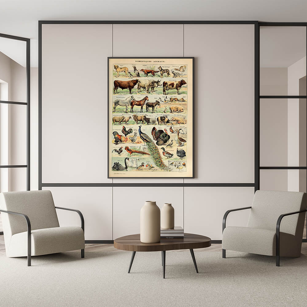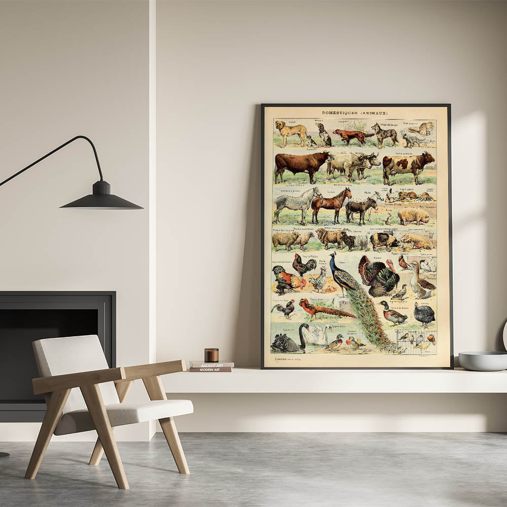 - High-quality reproduction of a vintage domestic animals chart