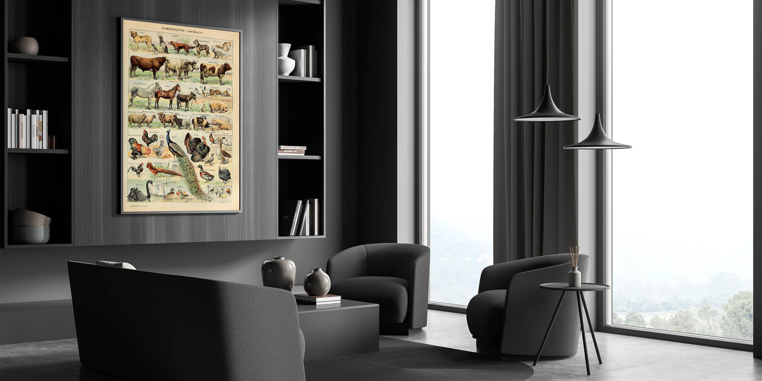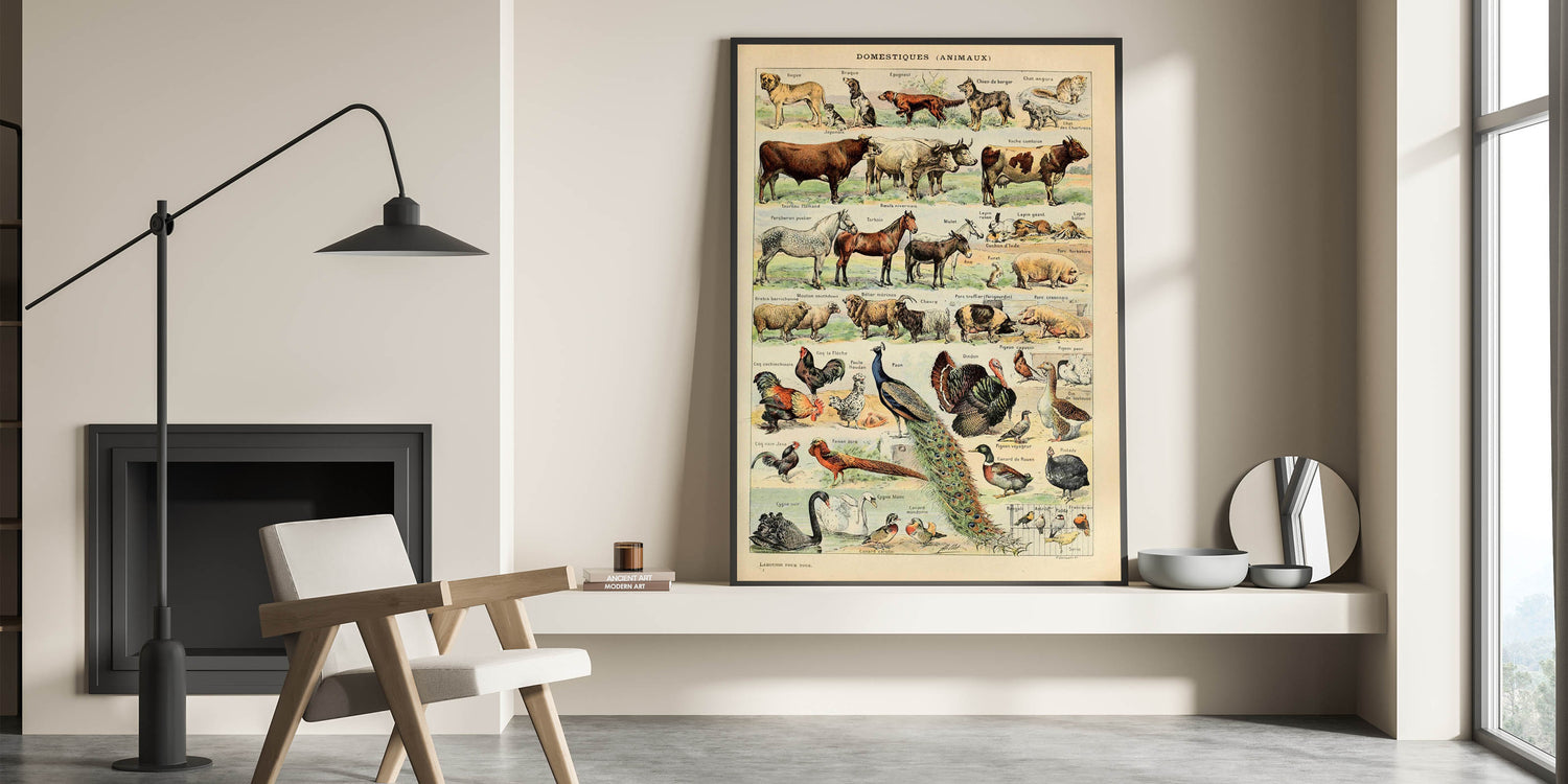 Step into the charm of vintage farm life with this detailed domestic animals illustration. Featuring a diverse collection of farm and household animals, this historical print showcases breeds of dogs, cats, horses, cows, sheep, goats, poultry, and more in a beautifully illustrated style. Perfect for farmhouse decor, vintage collectors, and animal lovers, this classic artwork brings an elegant rustic touch to any space.