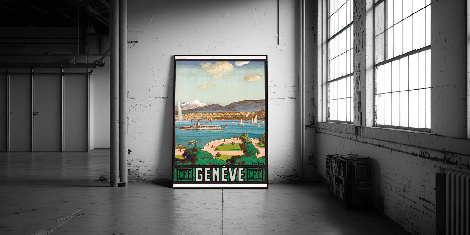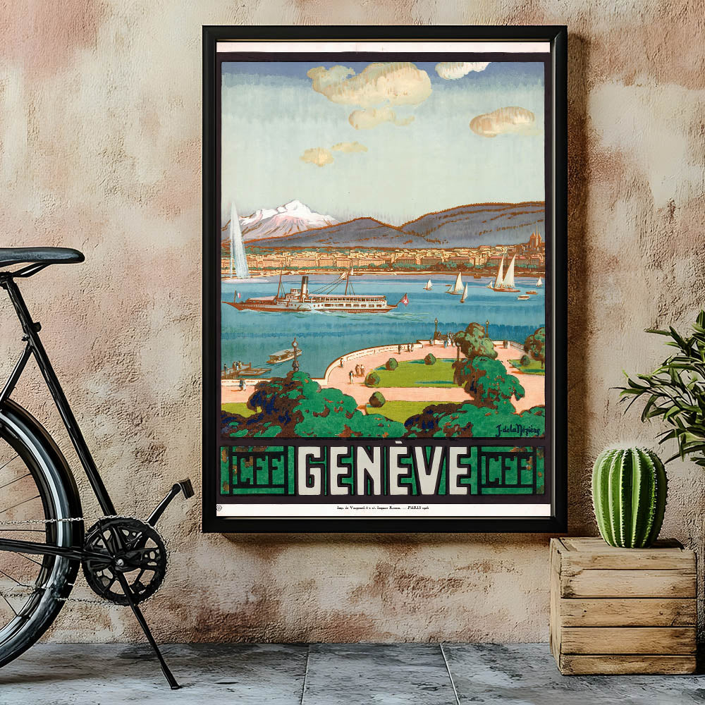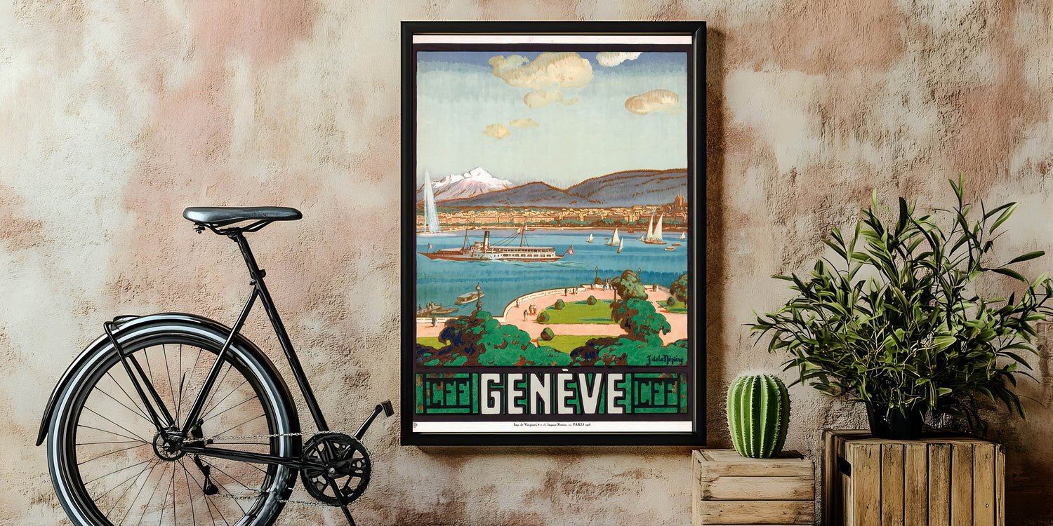 - Timeless Design: A breathtaking portrayal of Lake Geneva and the city, ideal for adding a retro touch to your space.