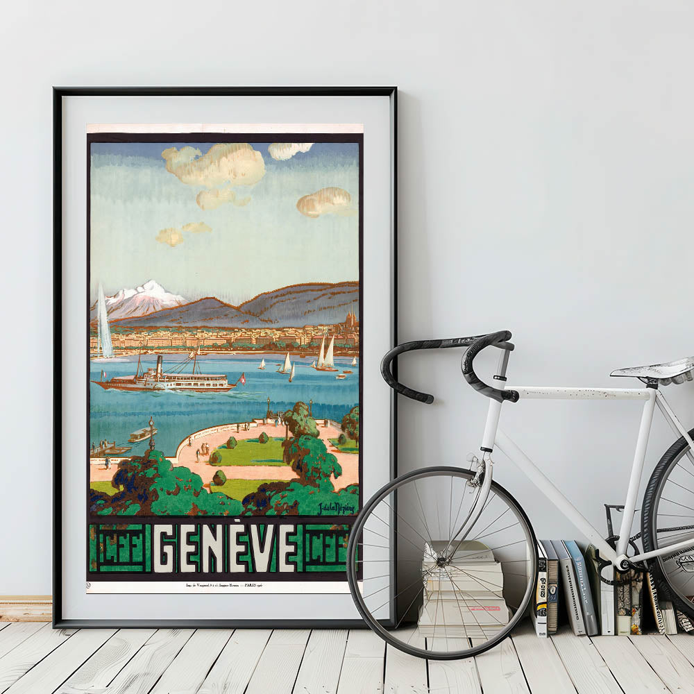 Vintage Geneva Travel Poster - Swiss Lake & Mountains Art Print
