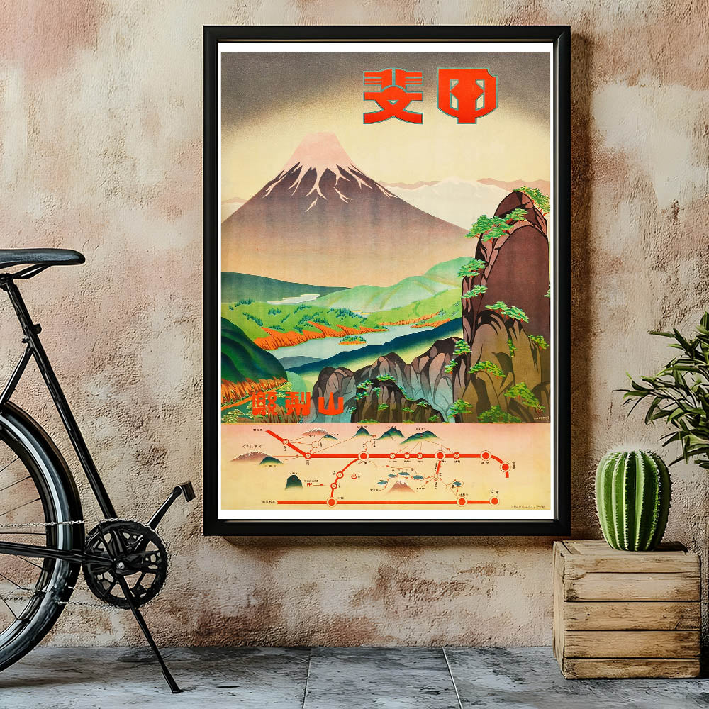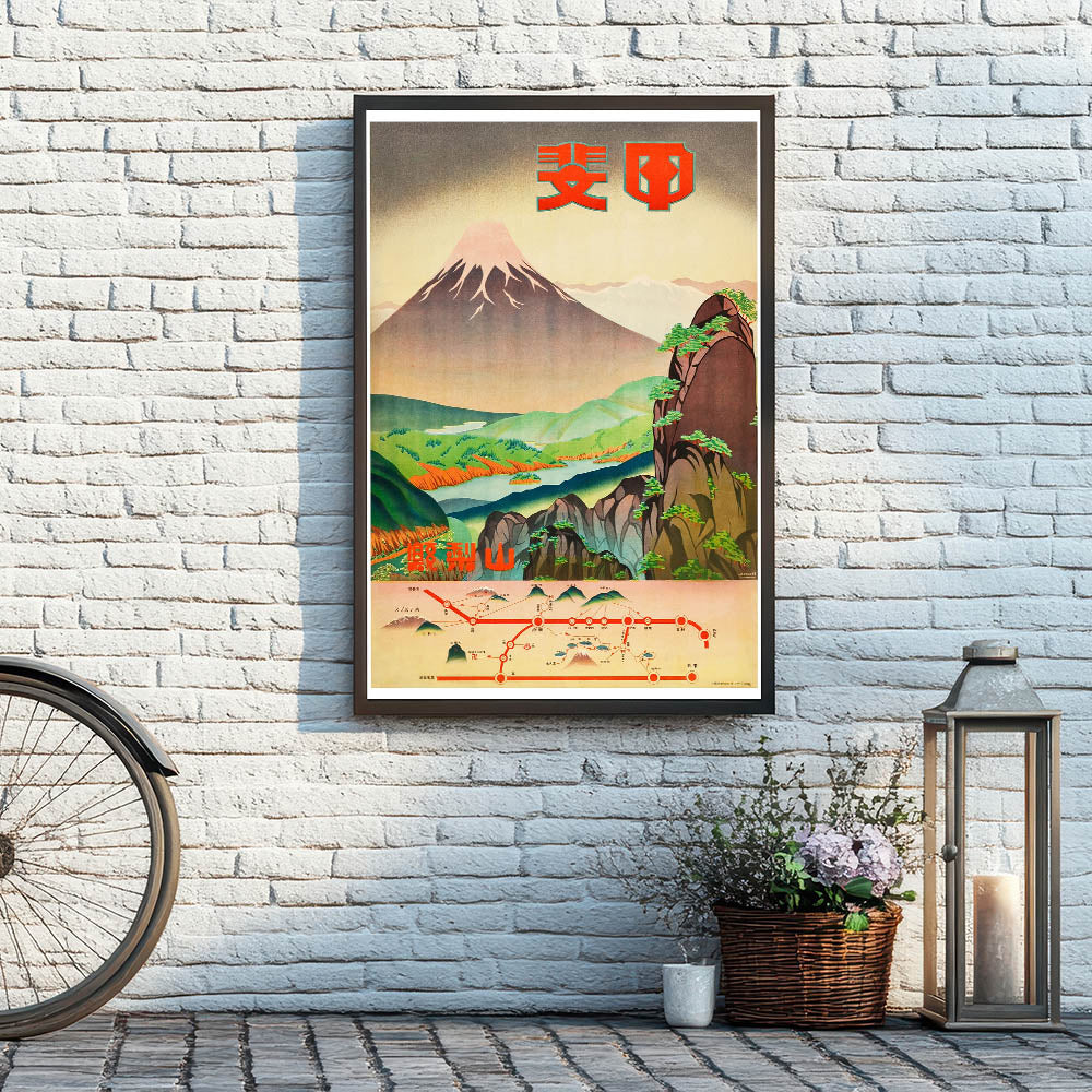 Closing: Bring the serenity of Japan’s landscape into your home with this timeless retro design featuring Mount Fuji and its breathtaking surroundings.
