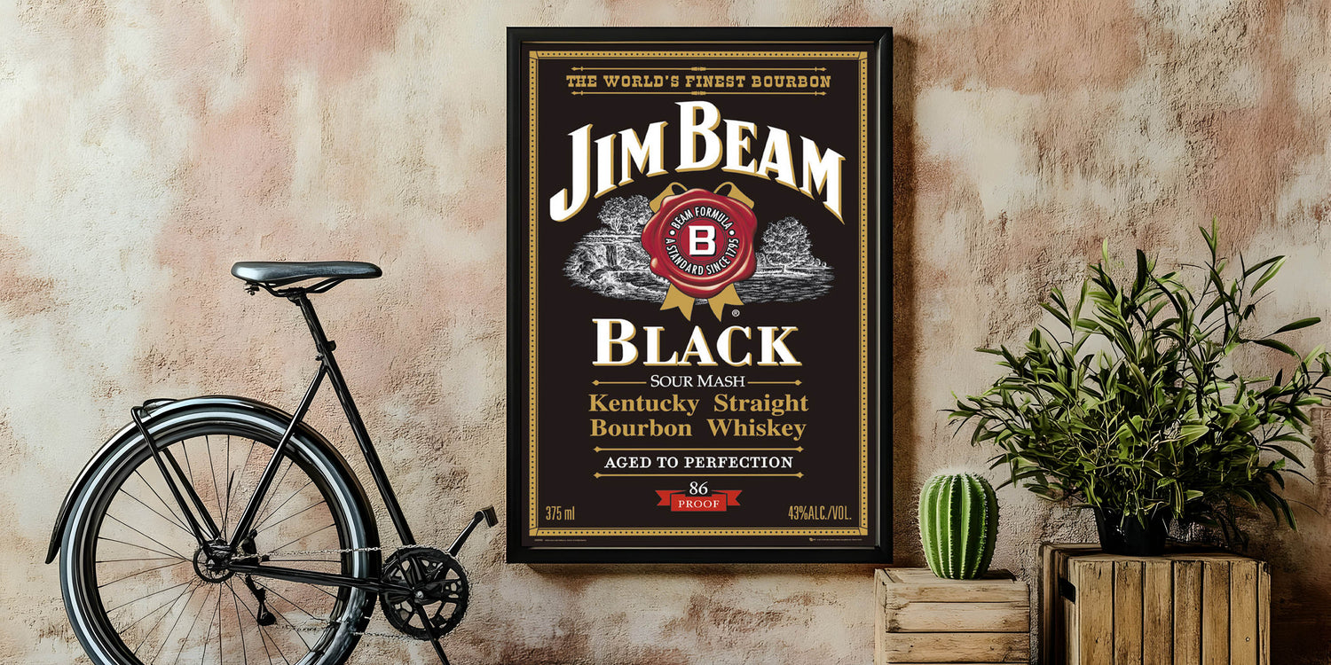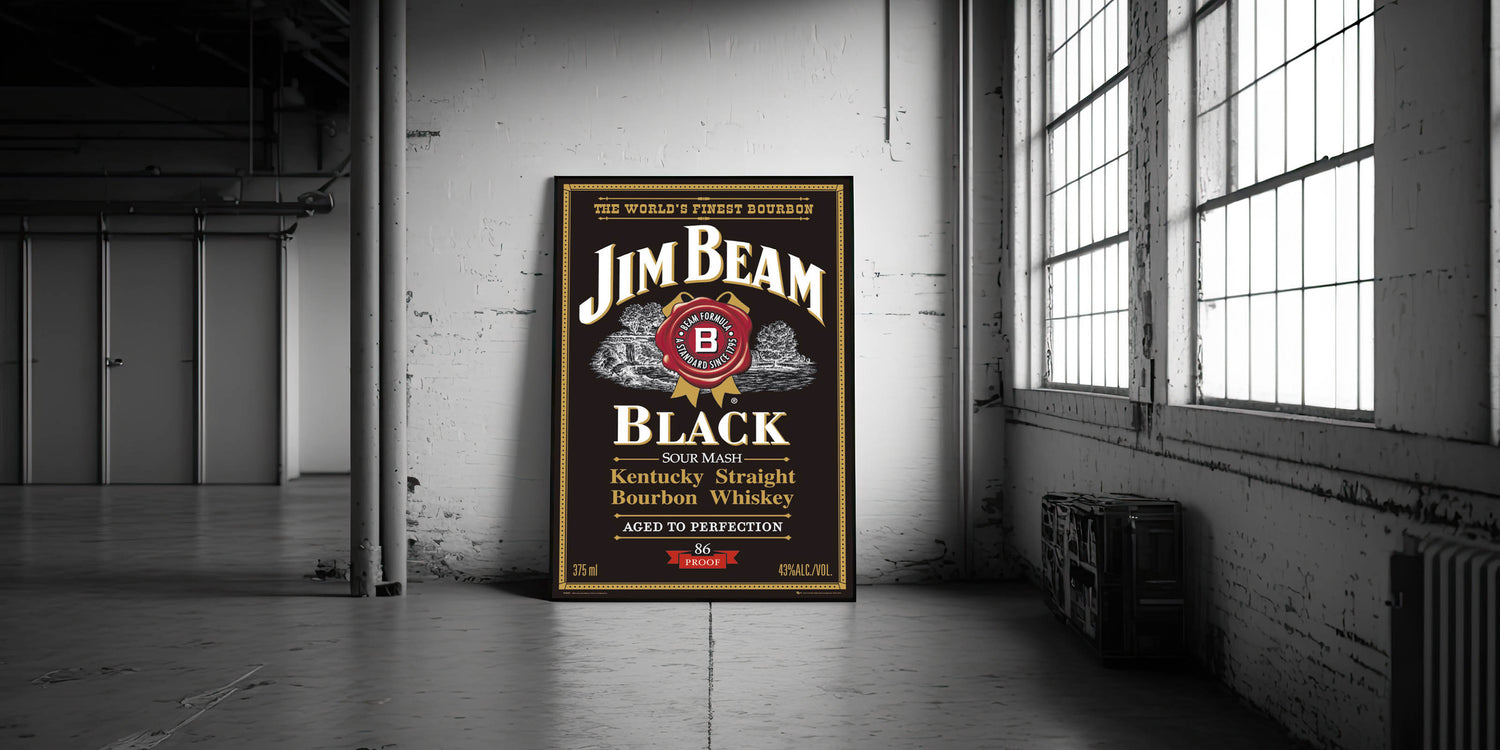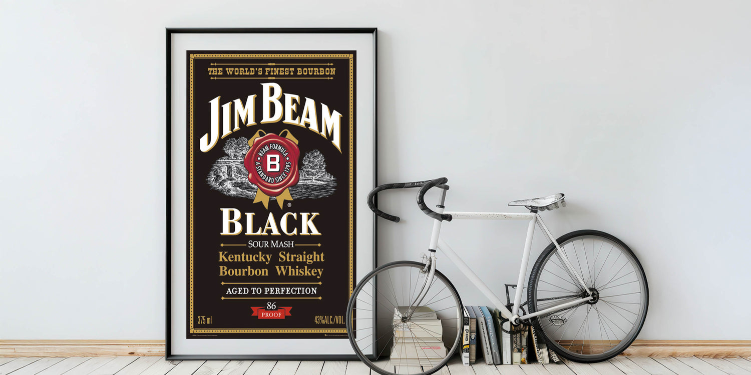 - High-quality print of the iconic Jim Beam Black Bourbon label