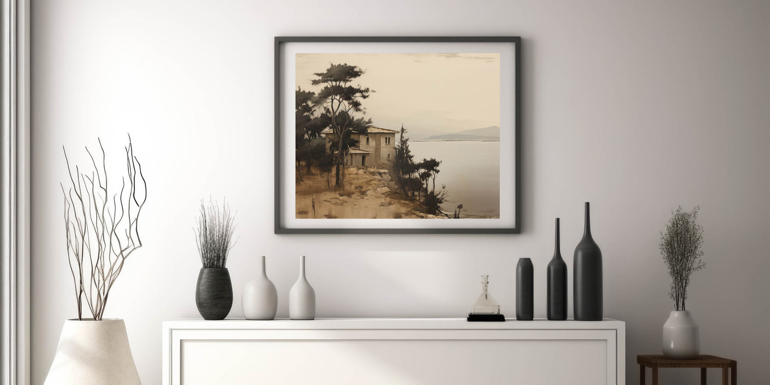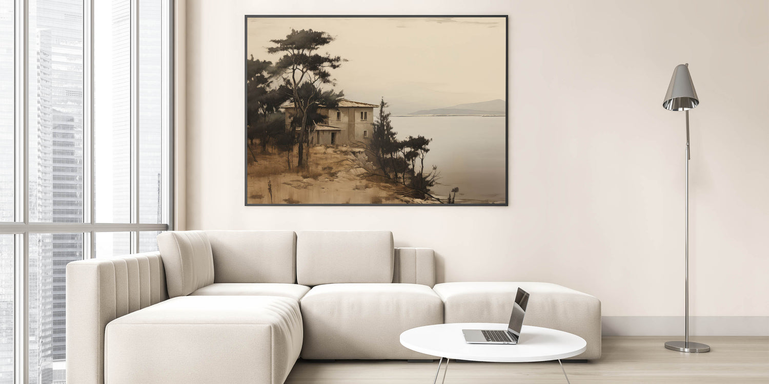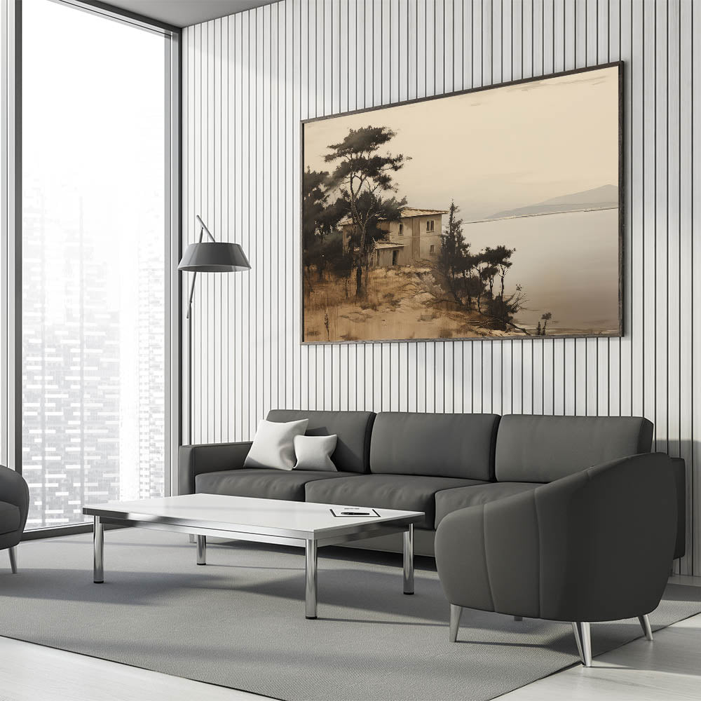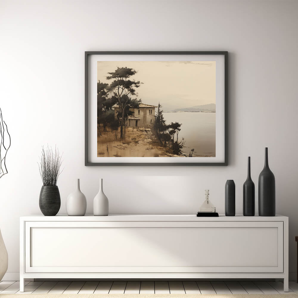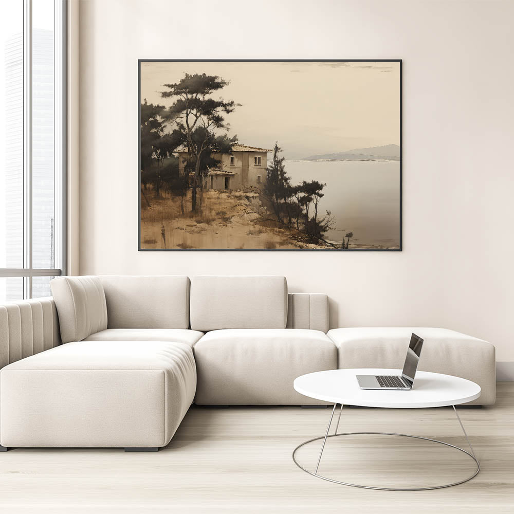 Transform your home with the timeless beauty of this vintage landscape art, showcasing a coastal house nestled among weathered trees along a tranquil shoreline. The soft, muted tones and serene atmosphere evoke a sense of nostalgia and antique charm, perfect for creating a peaceful and elegant ambiance in your space. This piece brings vintage-inspired landscape decor to life, offering a view into the calm beauty of nature and history.