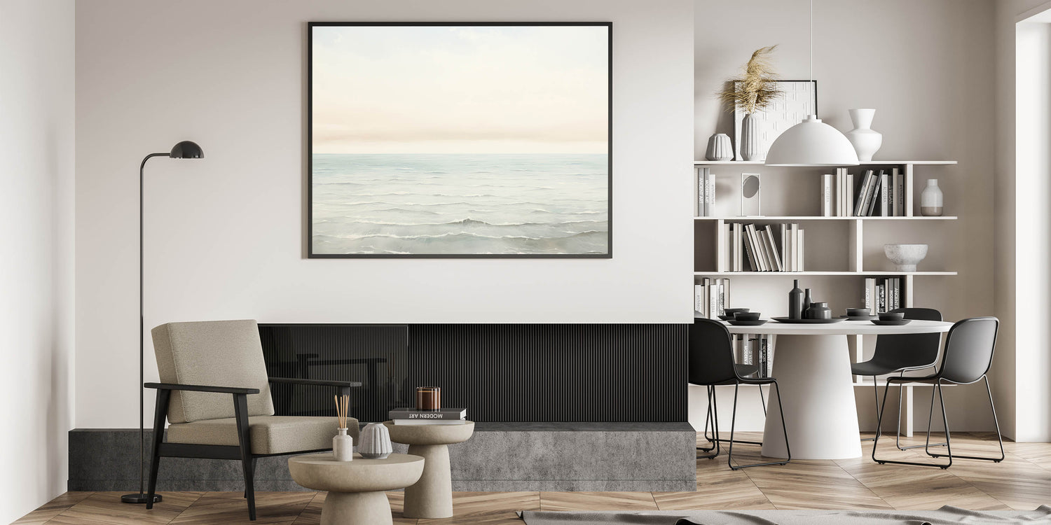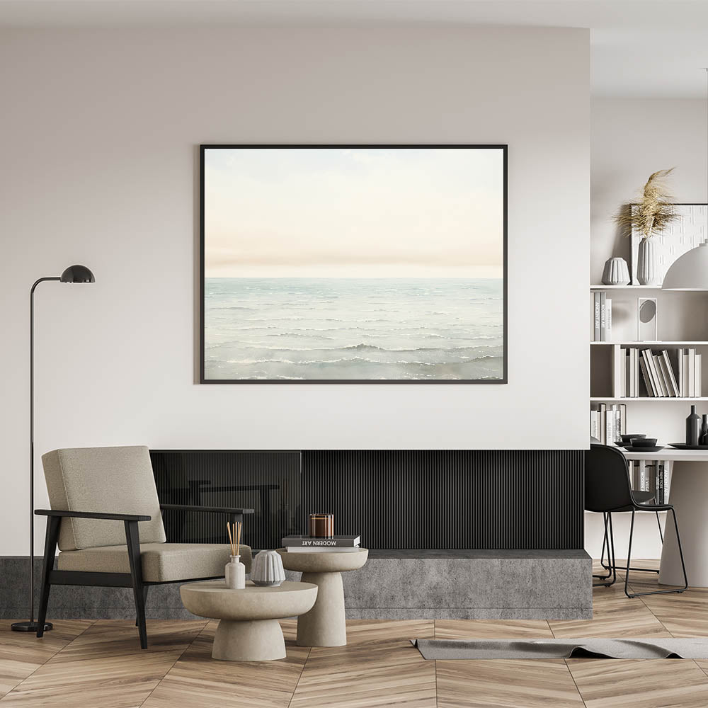 Vintage Landscape Art - Gentle Ocean Waves and Soft Sky