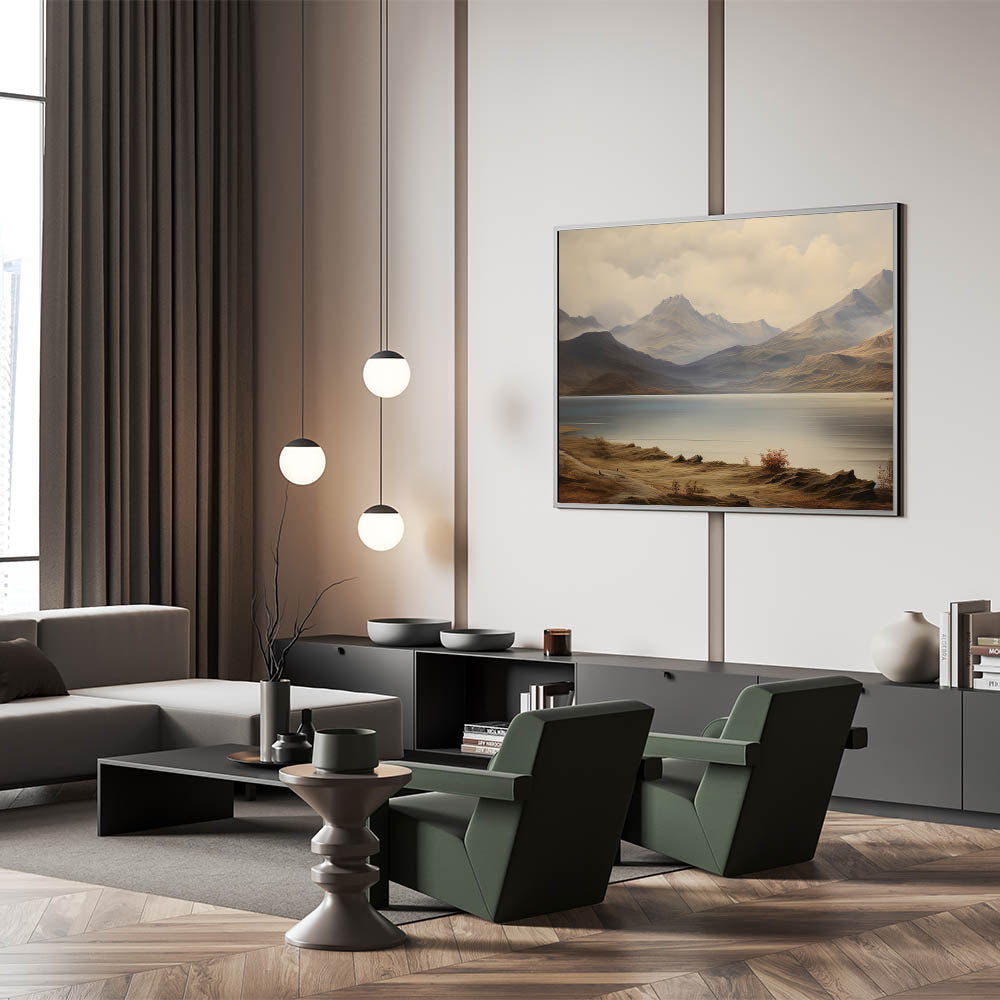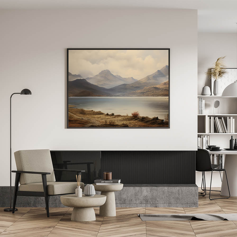 Vintage Landscape Art - Majestic Mountain and Lake View