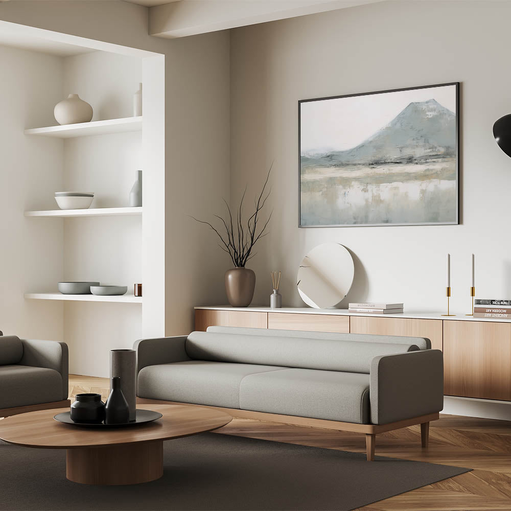 - Soft gray and beige tones for a calming and peaceful atmosphere