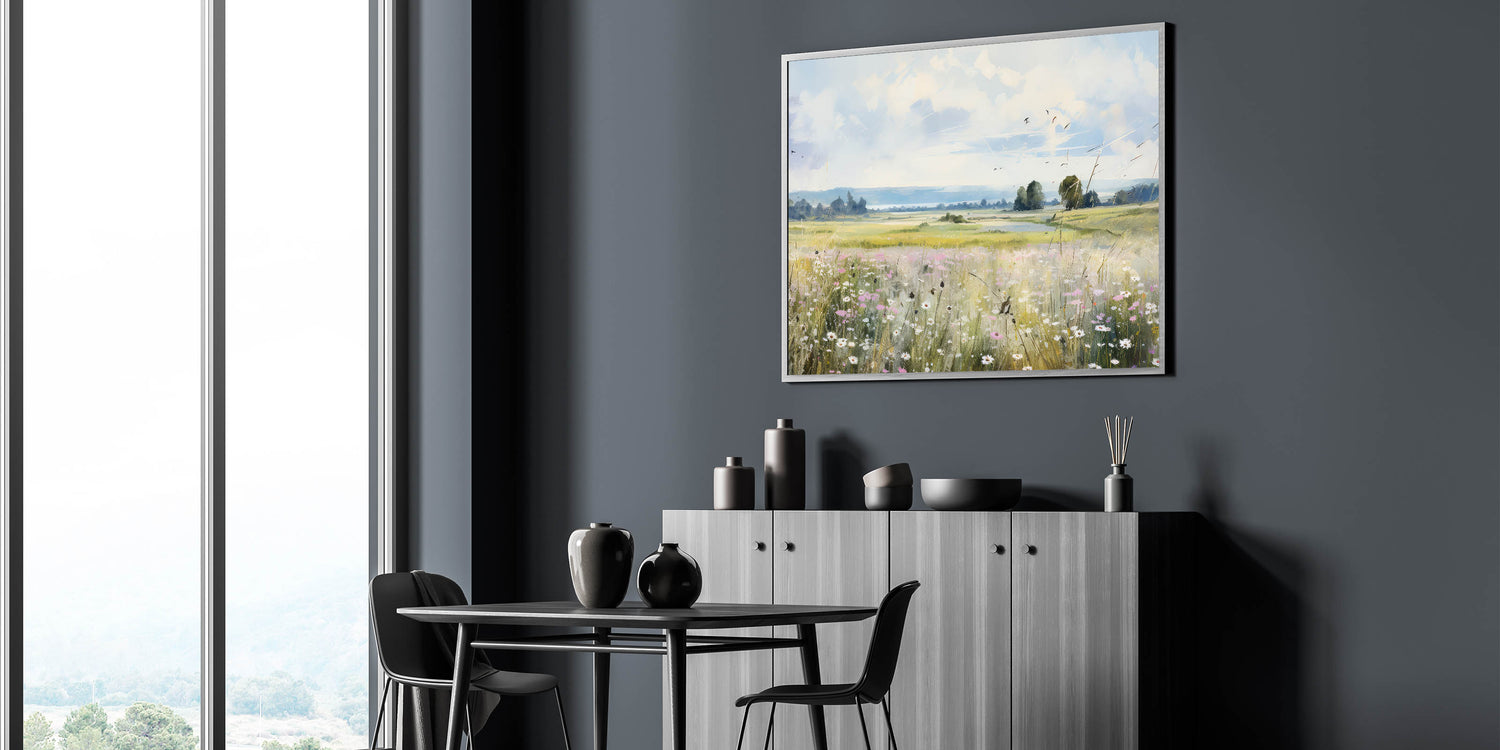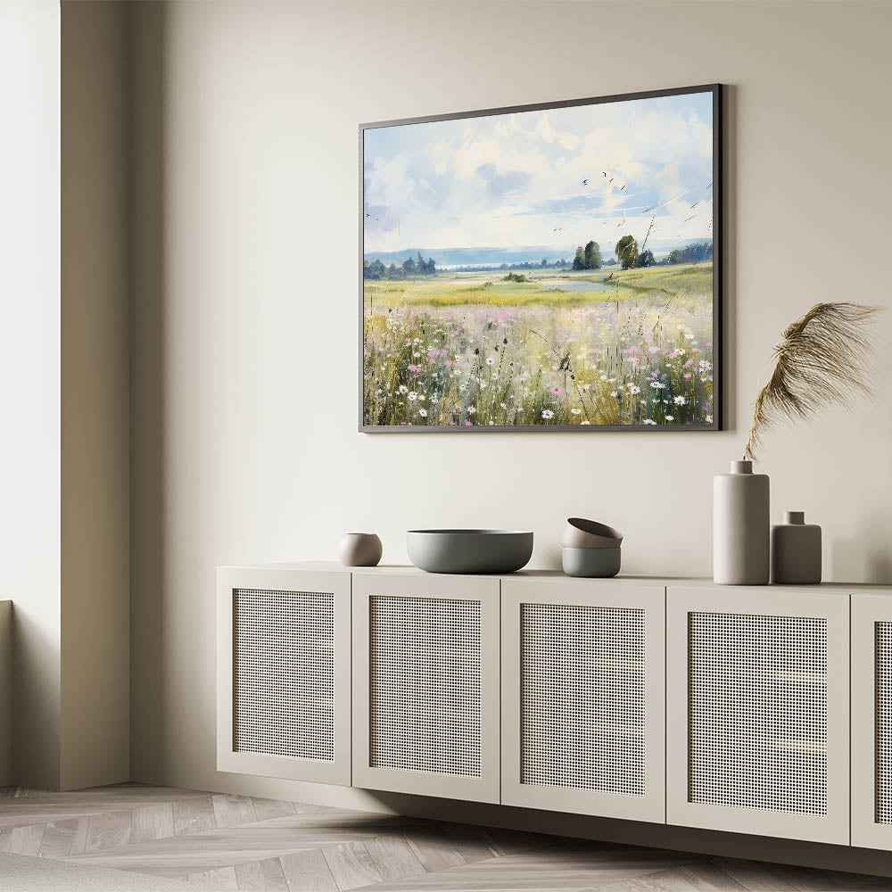Transform your home with this timeless work of art, capturing the peaceful charm of a blooming field and the tranquil beauty of the countryside.