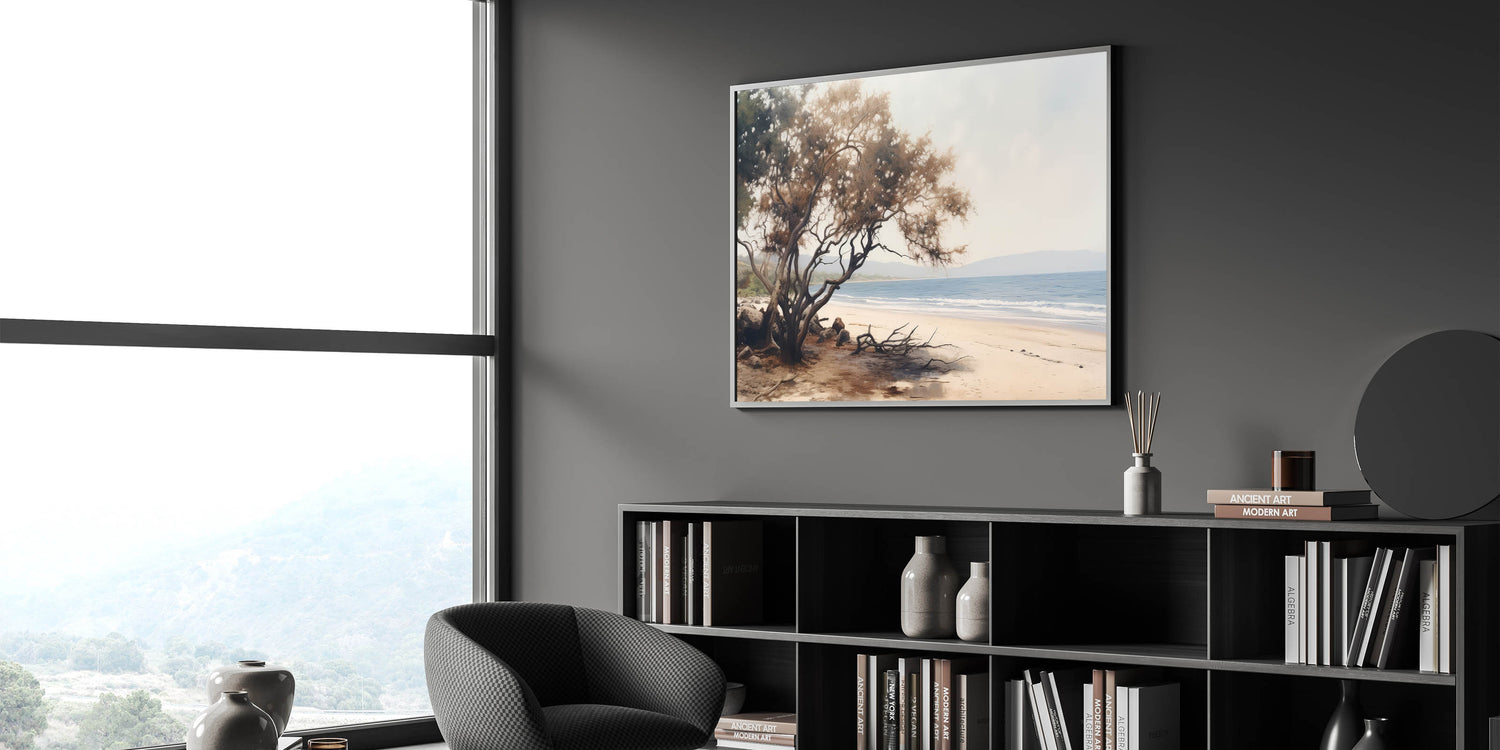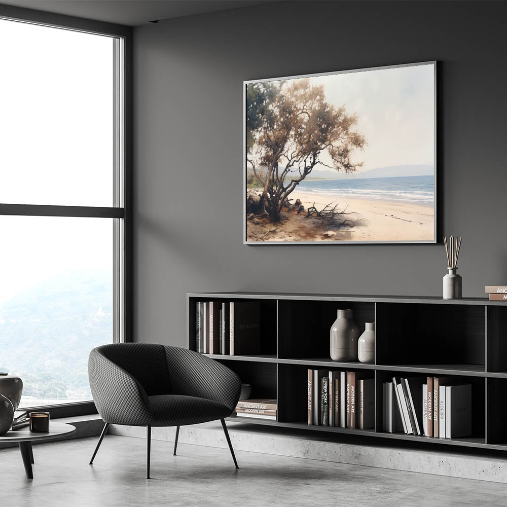 Embrace the timeless beauty of vintage landscapes with this stunning coastal artwork. Capturing serene countryside views and the tranquil beauty of a weathered tree on the beach, this piece of art transports you to a peaceful, nostalgic setting. Ideal for those who love classic elegance with retro landscapes, this vintage-inspired design enhances your home decor with antique charm.