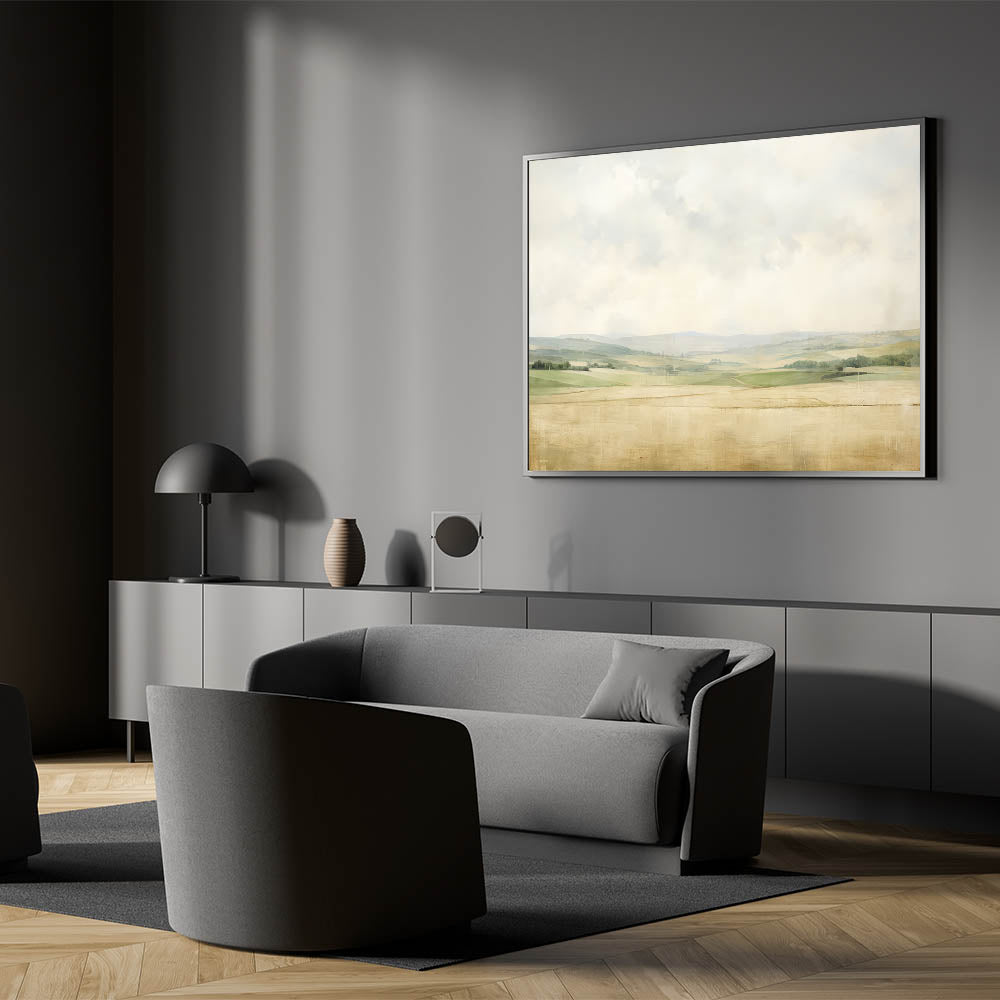 Bring the tranquil beauty of the countryside into your home with this vintage landscape art print. Featuring rolling green hills and vast fields bathed in soft, earthy tones, this piece captures the essence of serene, nostalgic countryside views. Its vintage charm and timeless elegance make it a perfect addition to any room, whether you are looking for vintage-inspired wall art or classic landscape prints that bring nature indoors.
