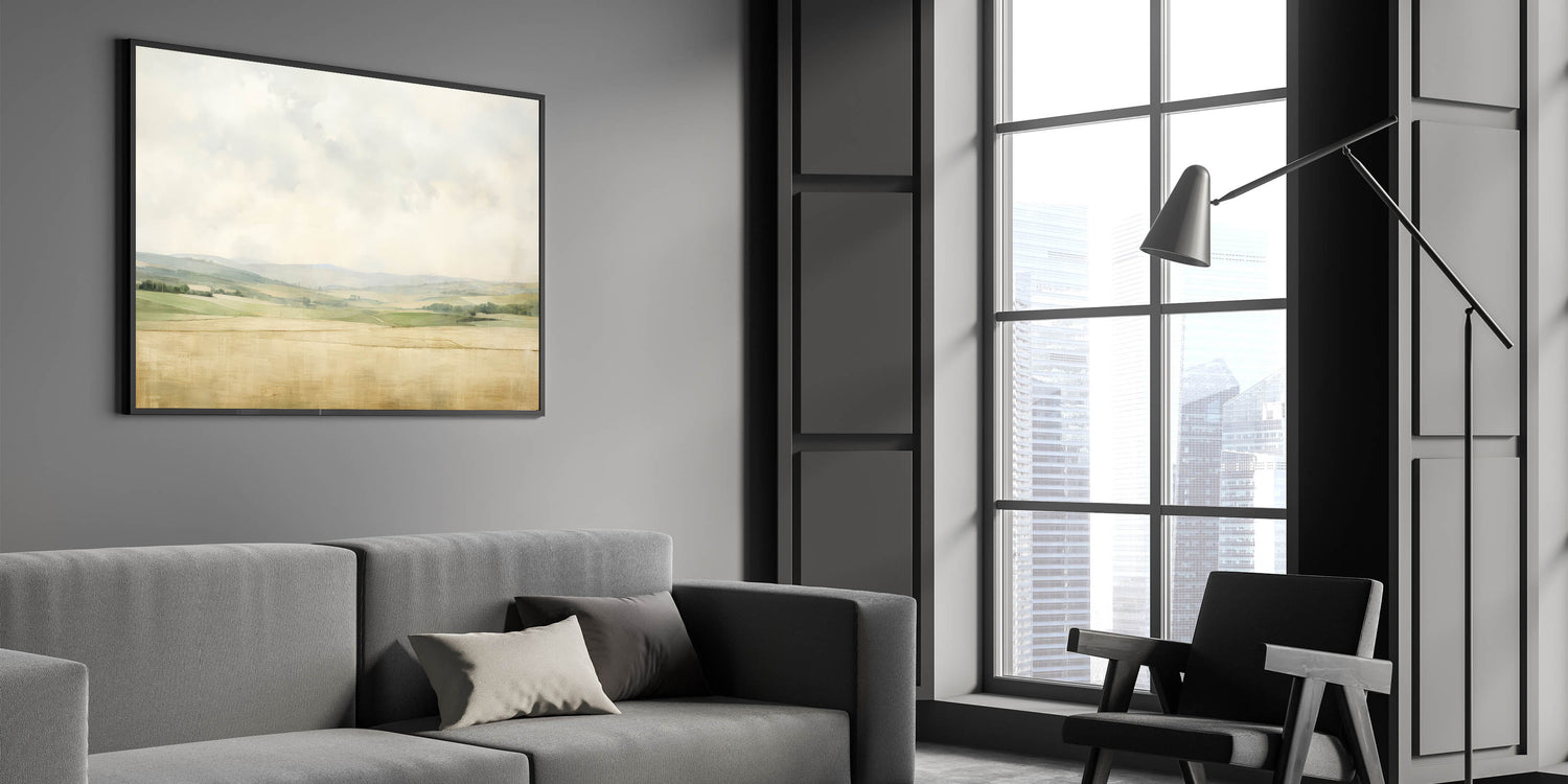 Vintage Landscape Art - Serene Countryside Fields in Soft Hues