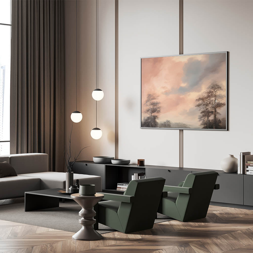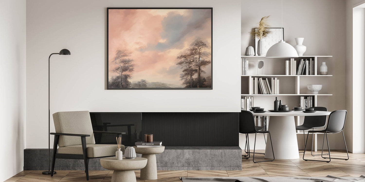 Bring the timeless serenity of nature into your home with this vintage landscape print, capturing the essence of calm skies and peaceful trees.