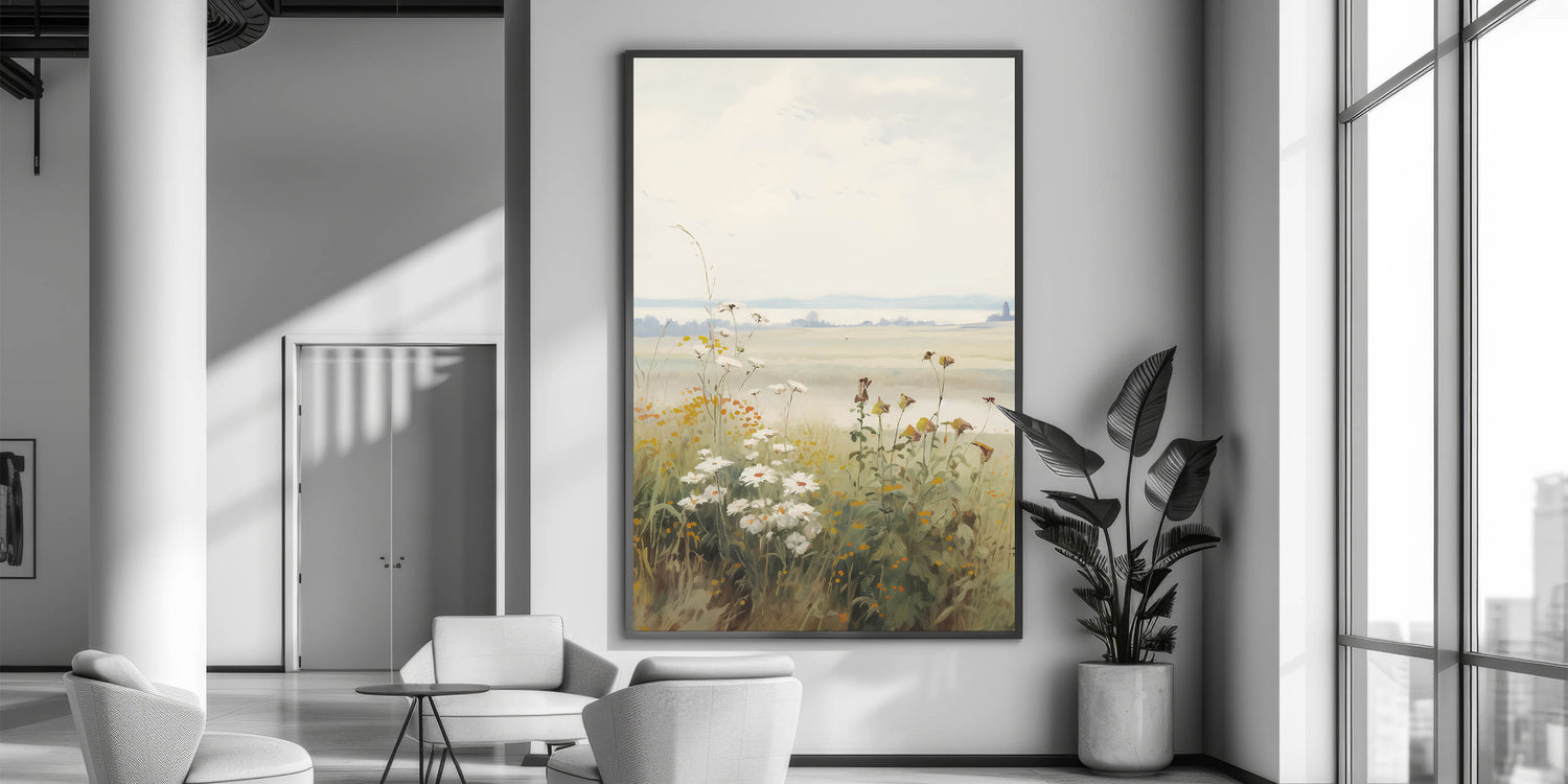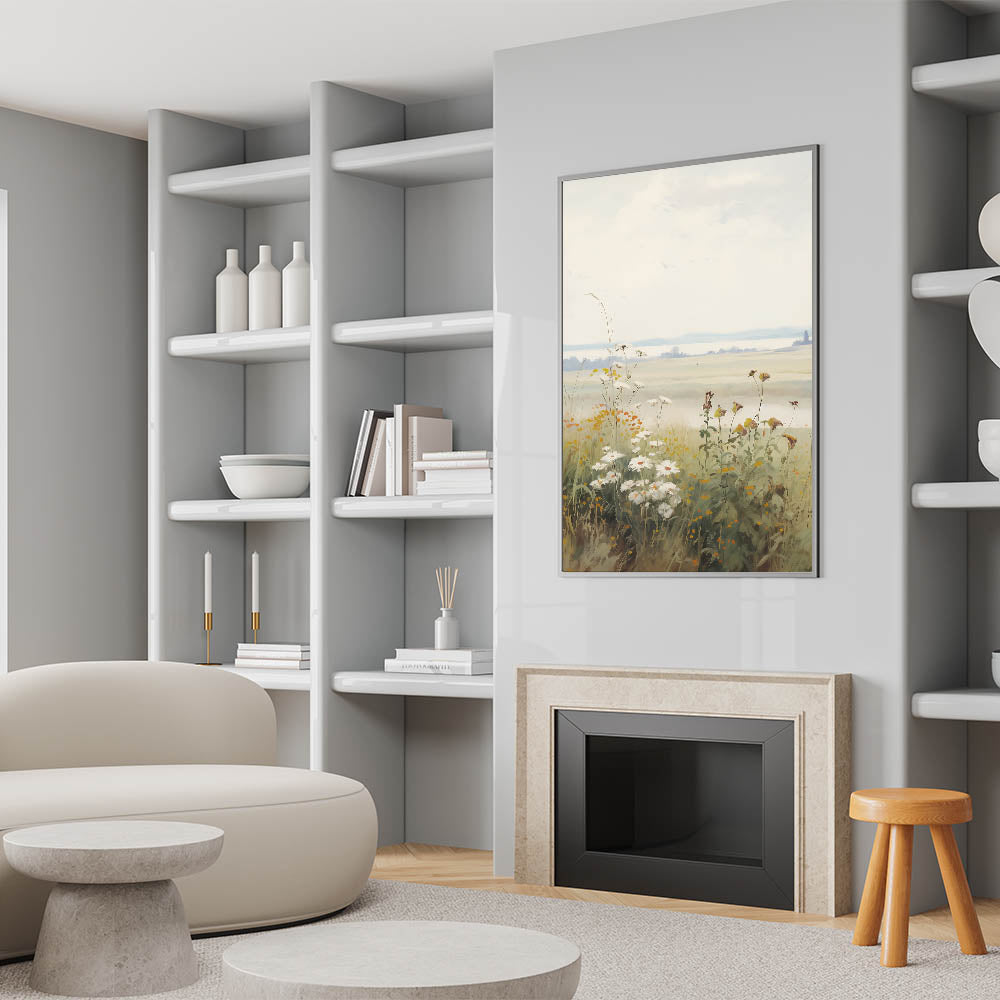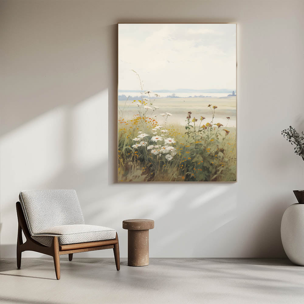 Vintage Landscape Art – Serene Wildflower Meadow Scene