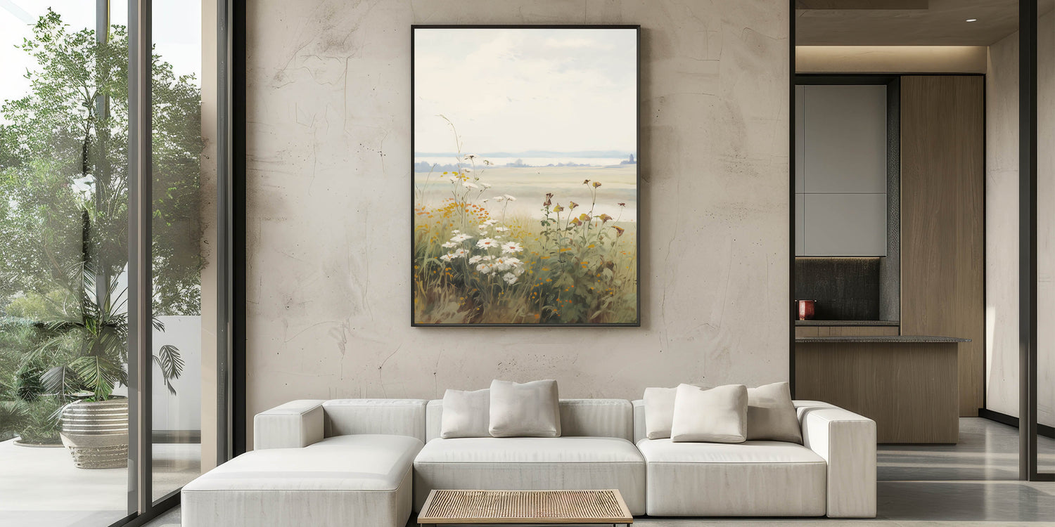 Enhance your home with the timeless beauty of vintage landscapes. This piece showcases a serene meadow, adorned with wildflowers in soft hues, bringing the tranquility of nature indoors. The gentle colors and nostalgic scenery evoke a sense of peace, perfect for any space seeking classic elegance.