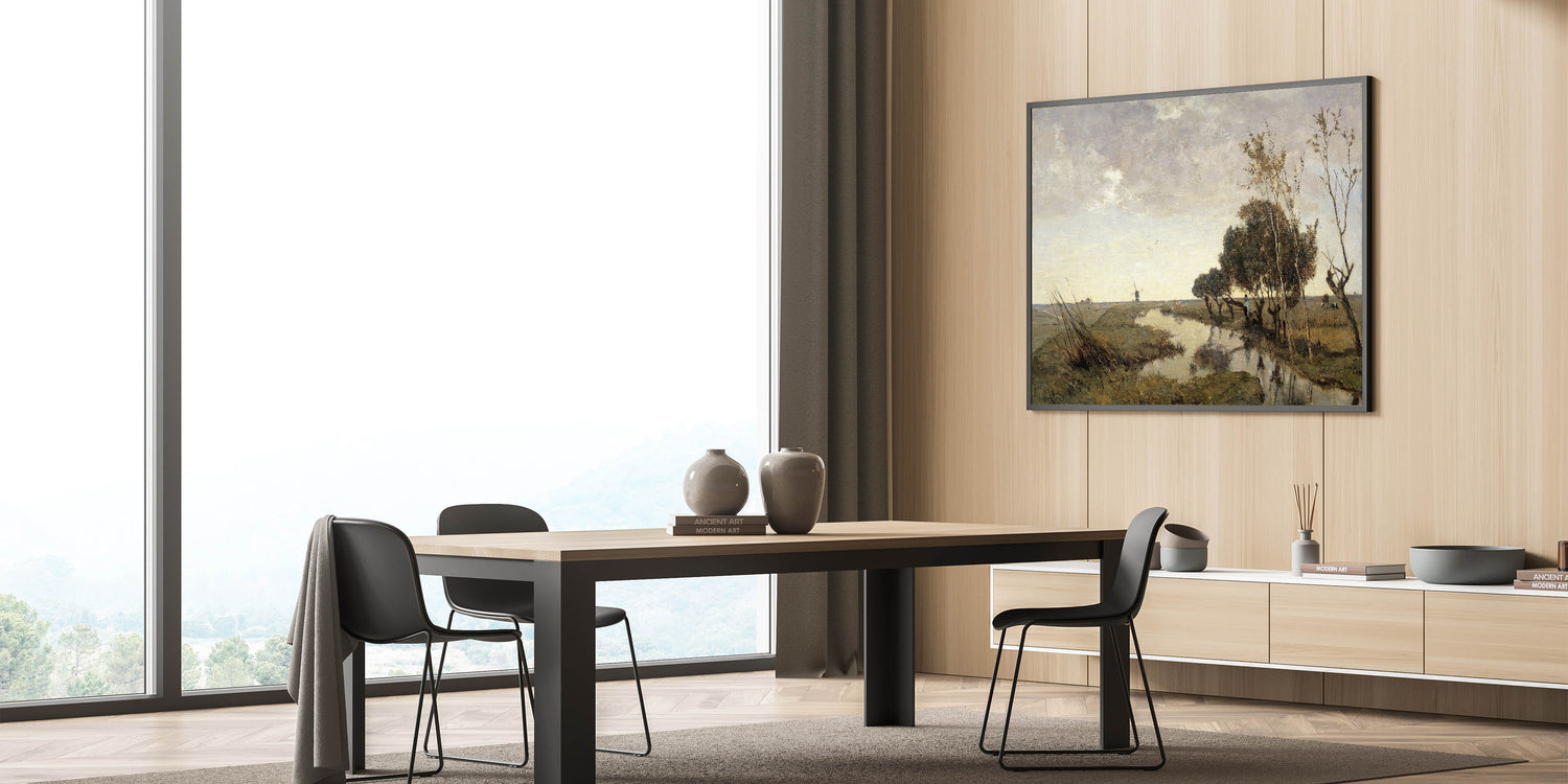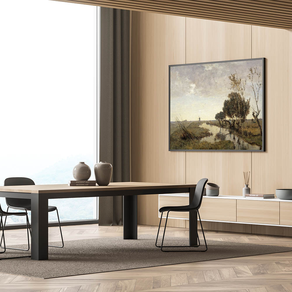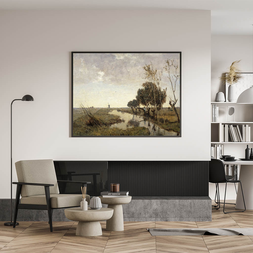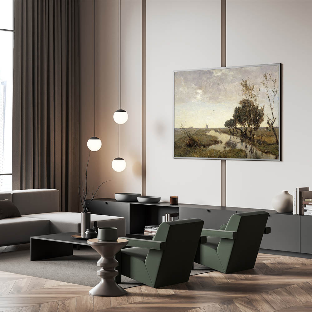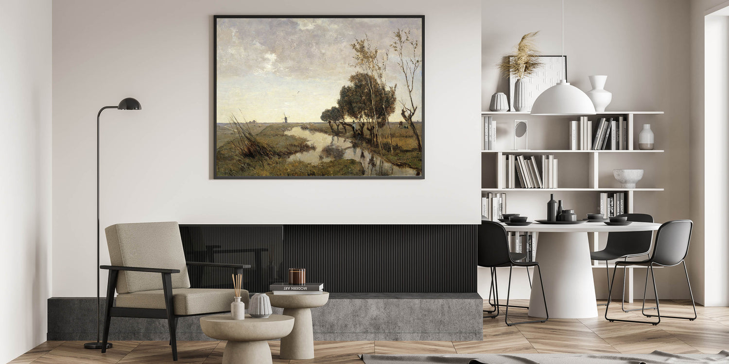 - Historic Landscape: Featuring a classic windmill and peaceful waterside, this vintage-inspired artwork exudes calm and timeless appeal.
