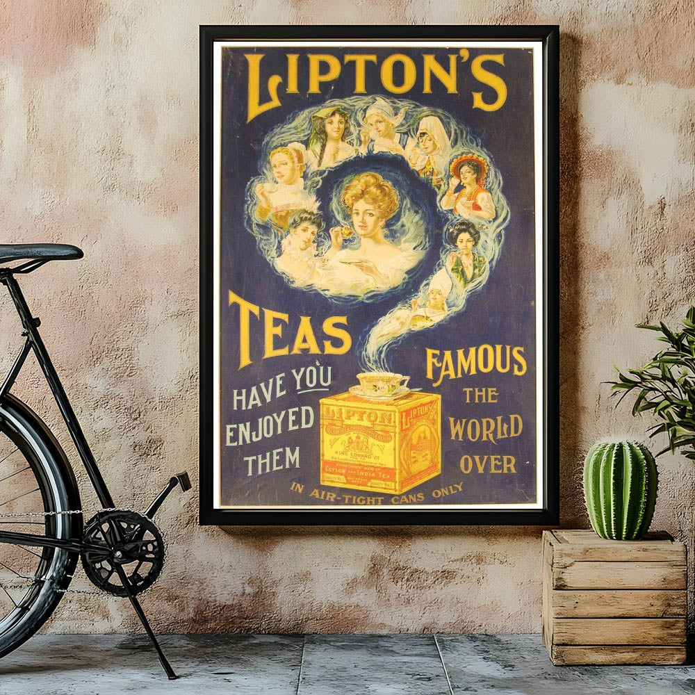 With its bright colors and captivating artwork, this piece perfectly embodies the international allure of Lipton’s Tea, making it a stunning addition to any kitchen, dining area, or tea lover’s collection. Whether you're a collector of vintage ads or simply love the nostalgic feel of retro design, this print brings timeless charm to your decor.