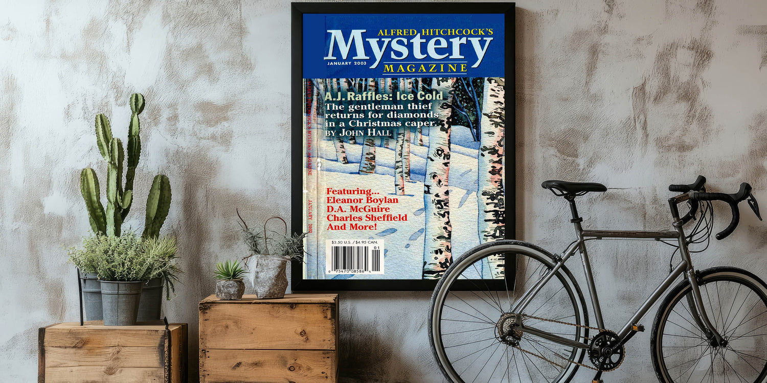 - A stunning reproduction of the Alfred Hitchcock Mystery Magazine cover from January 2003