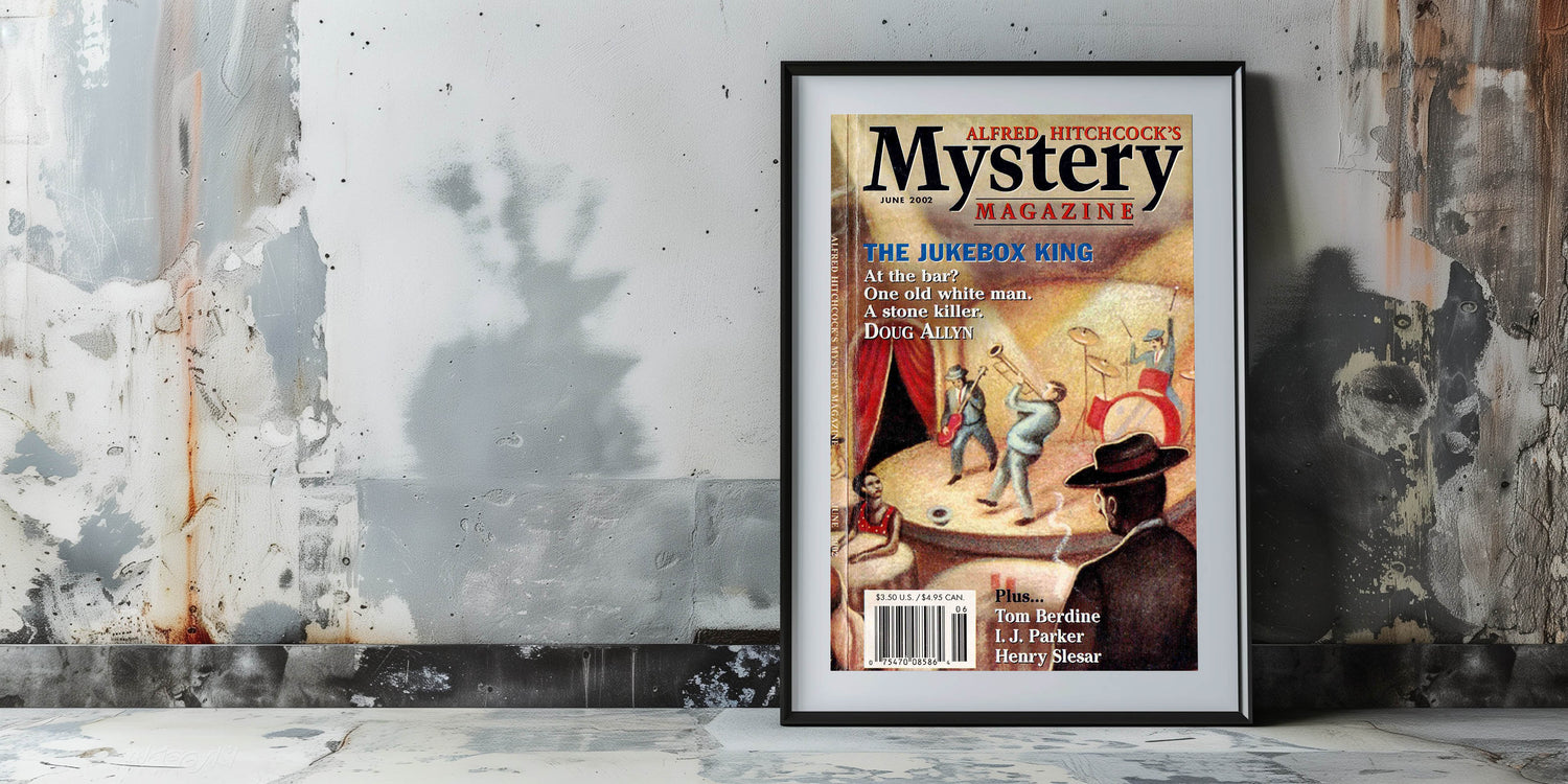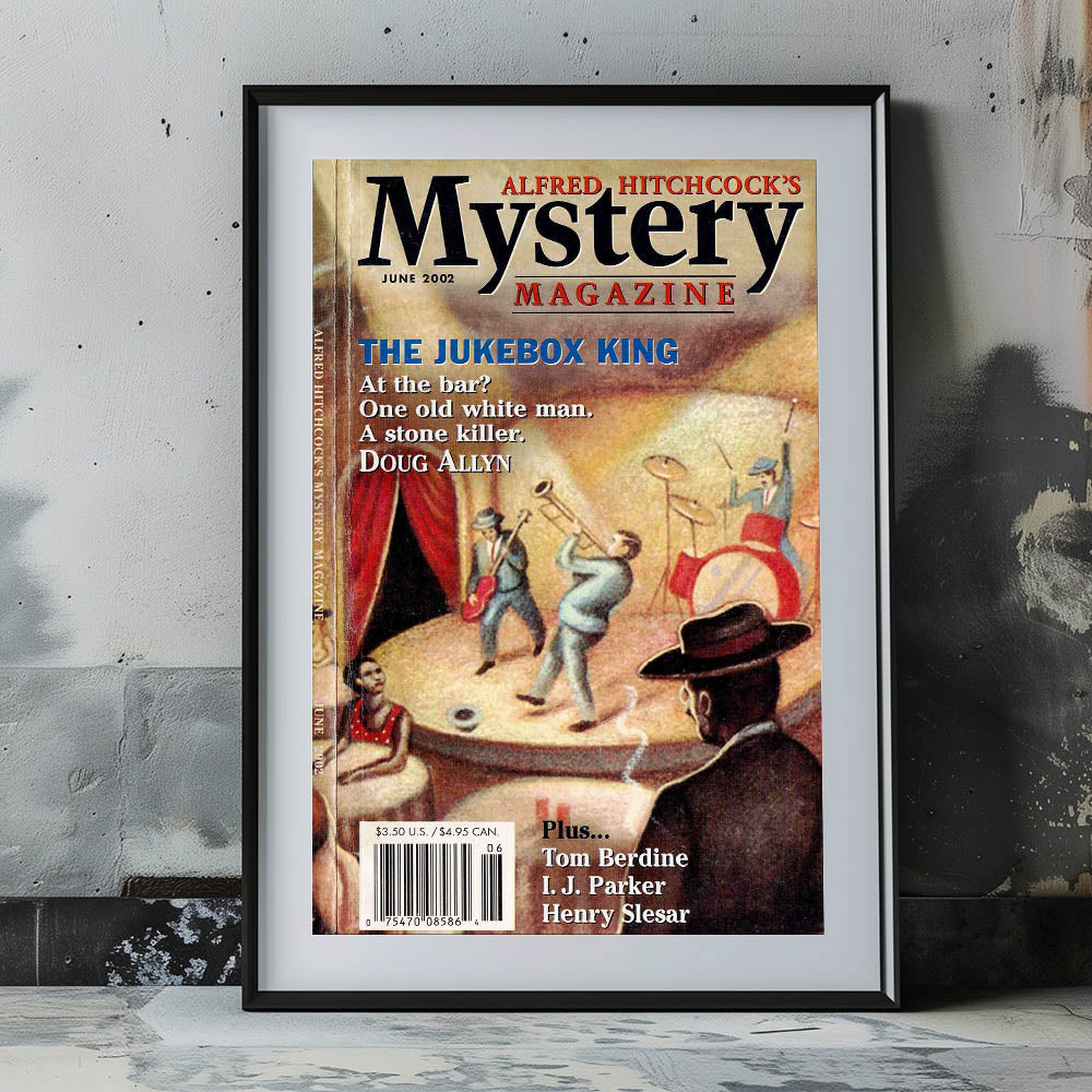 Add a touch of mystery and jazz to your home with this vintage magazine cover art from Alfred Hitchcock’s Mystery Magazine, June 2002. Featuring a vibrant illustration of a jazz band, this retro print captures the excitement of both music and mystery. It’s perfect for anyone who loves classic magazine cover artwork or wants to add a unique piece to their collection.